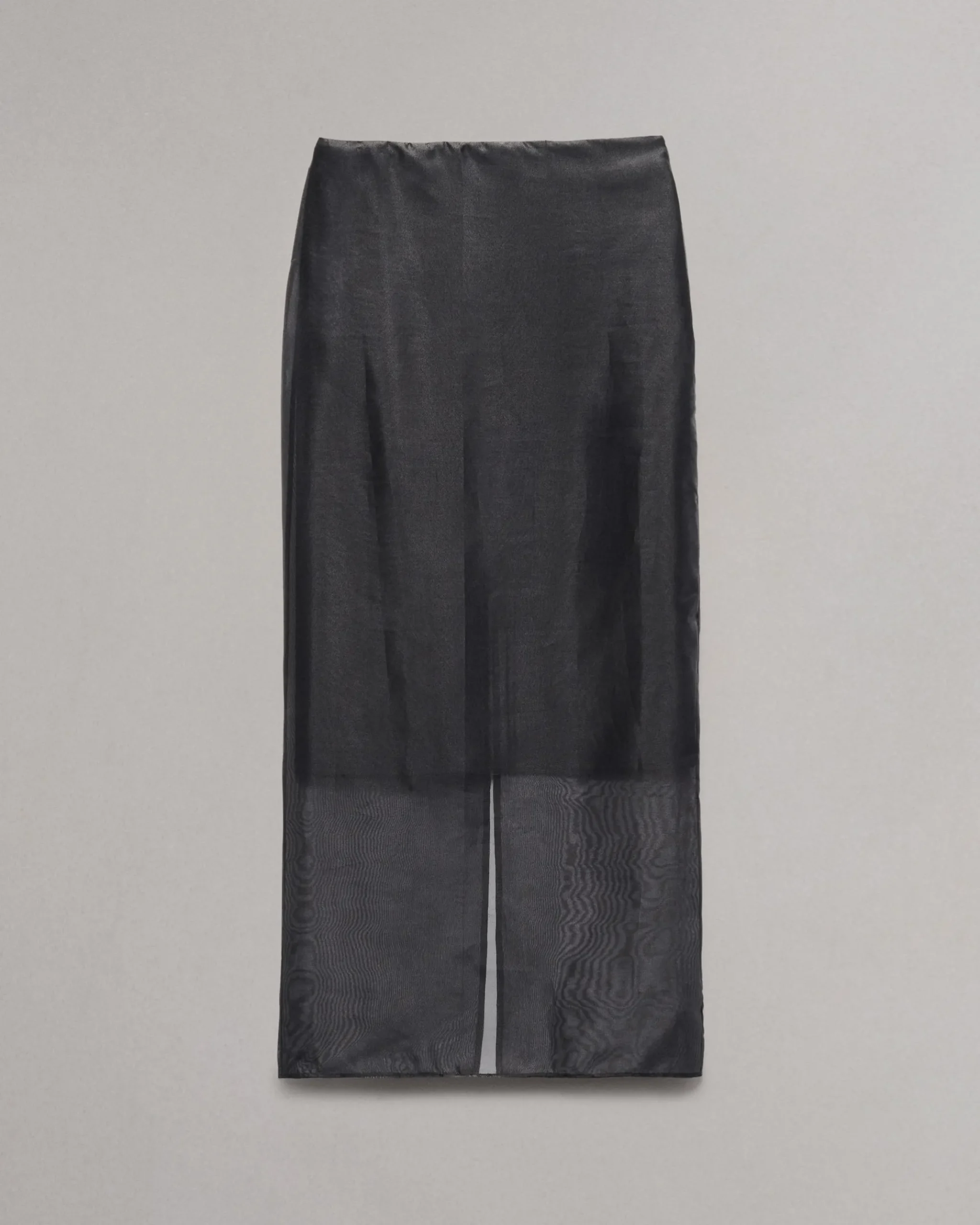 Sheer, lightweight organza and a dramatic slit at the back side seam combine to create fluid movement in this mid-rise maxi skirt. It’s lined to just below the knee for additional coverage.