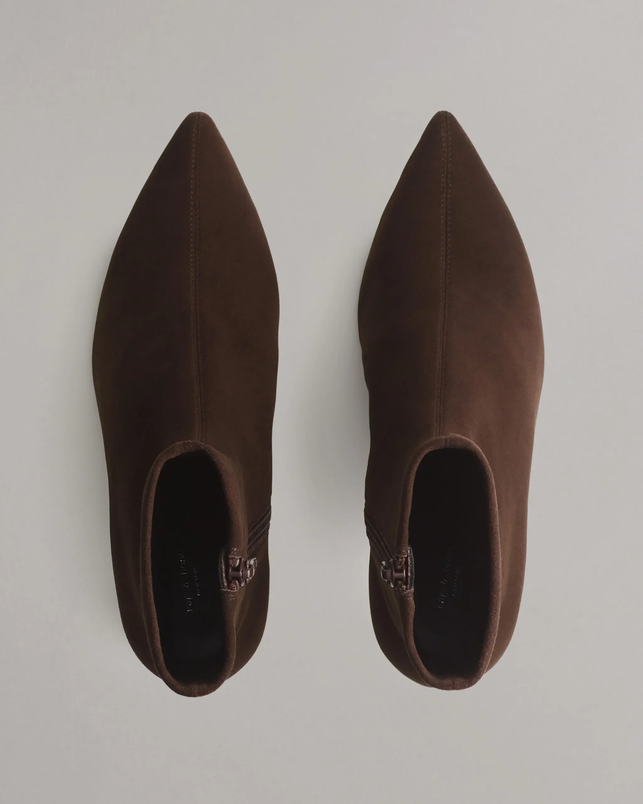 This zip-up ankle boot is sculpted for a glove-like fit from stretch suede. A pointed toe and slender stacked heel enhance its sleek profile. Inside, you’ll find dual-density antimicrobial foam insoles: OrthoLite® Lazy-Hybrid™ for custom-fit comfort, and OrthoLite® Recycled for stability and support.