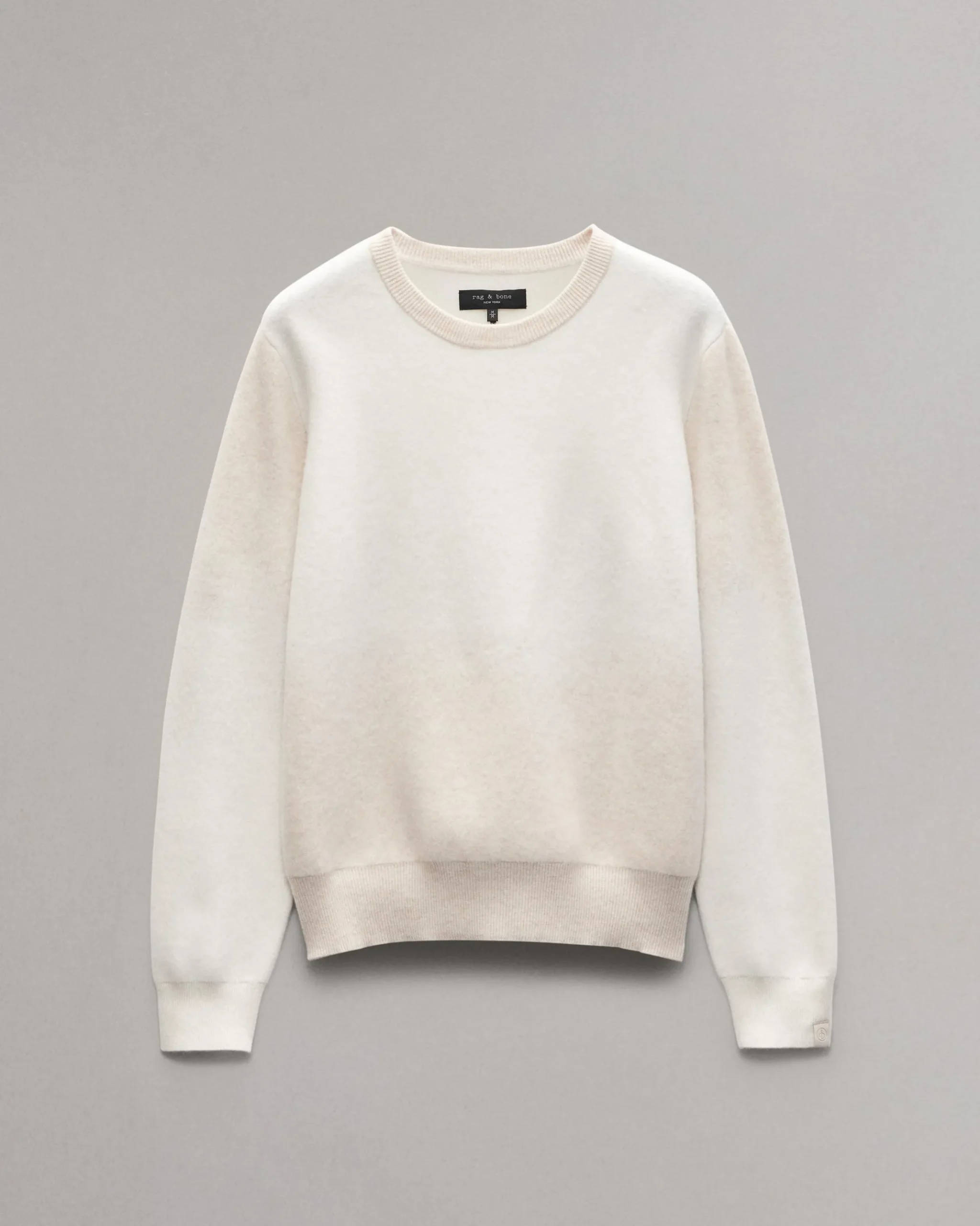 Ombre gradient effects create visual dimension in this classic-fitting sweater, which is crafted from a luxe blend of wool and cashmere and lightly brushed for extra softness.