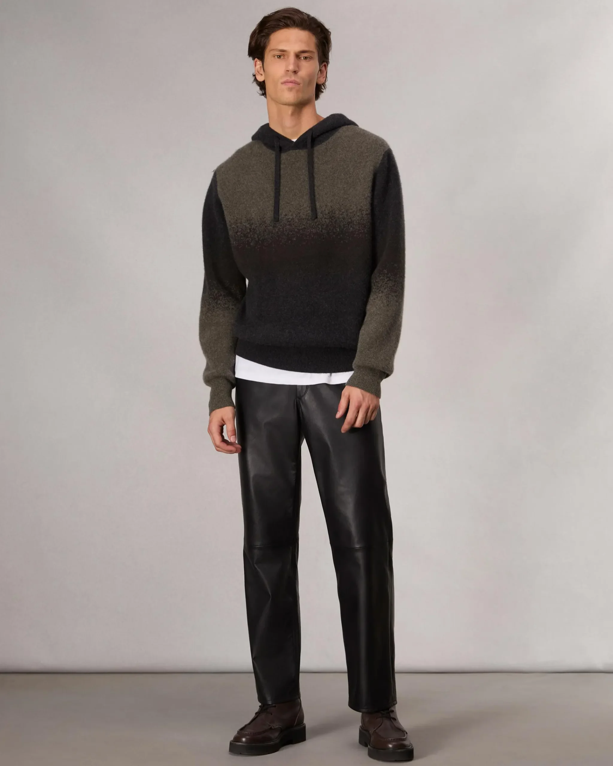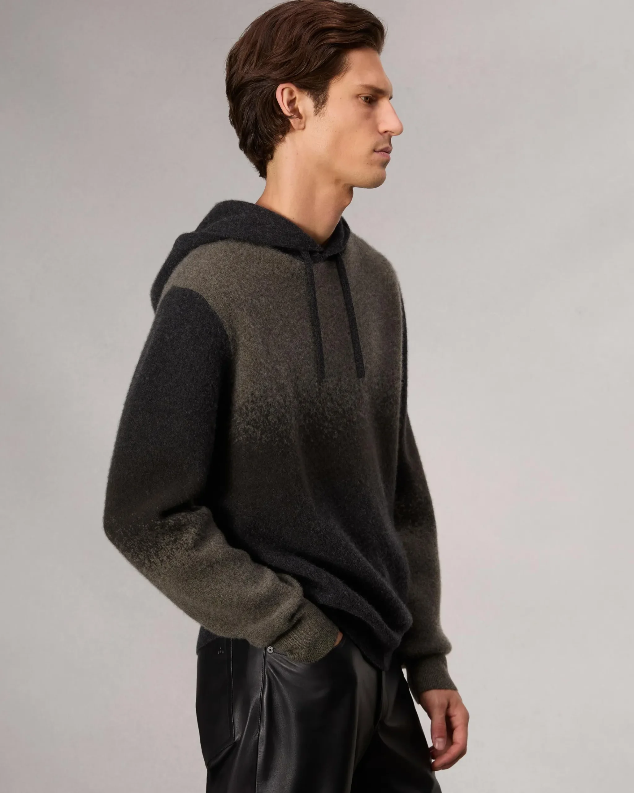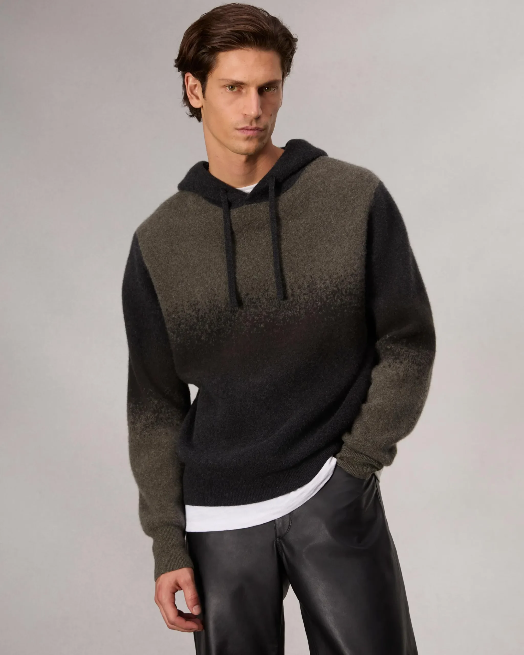 Combining the comfort of a sweater with the ease of a hoodie, this laid-back layer is crafted from wool and cashmere and lightly brushed for extra softness. Ombre gradient effects add cool, visual dimension.