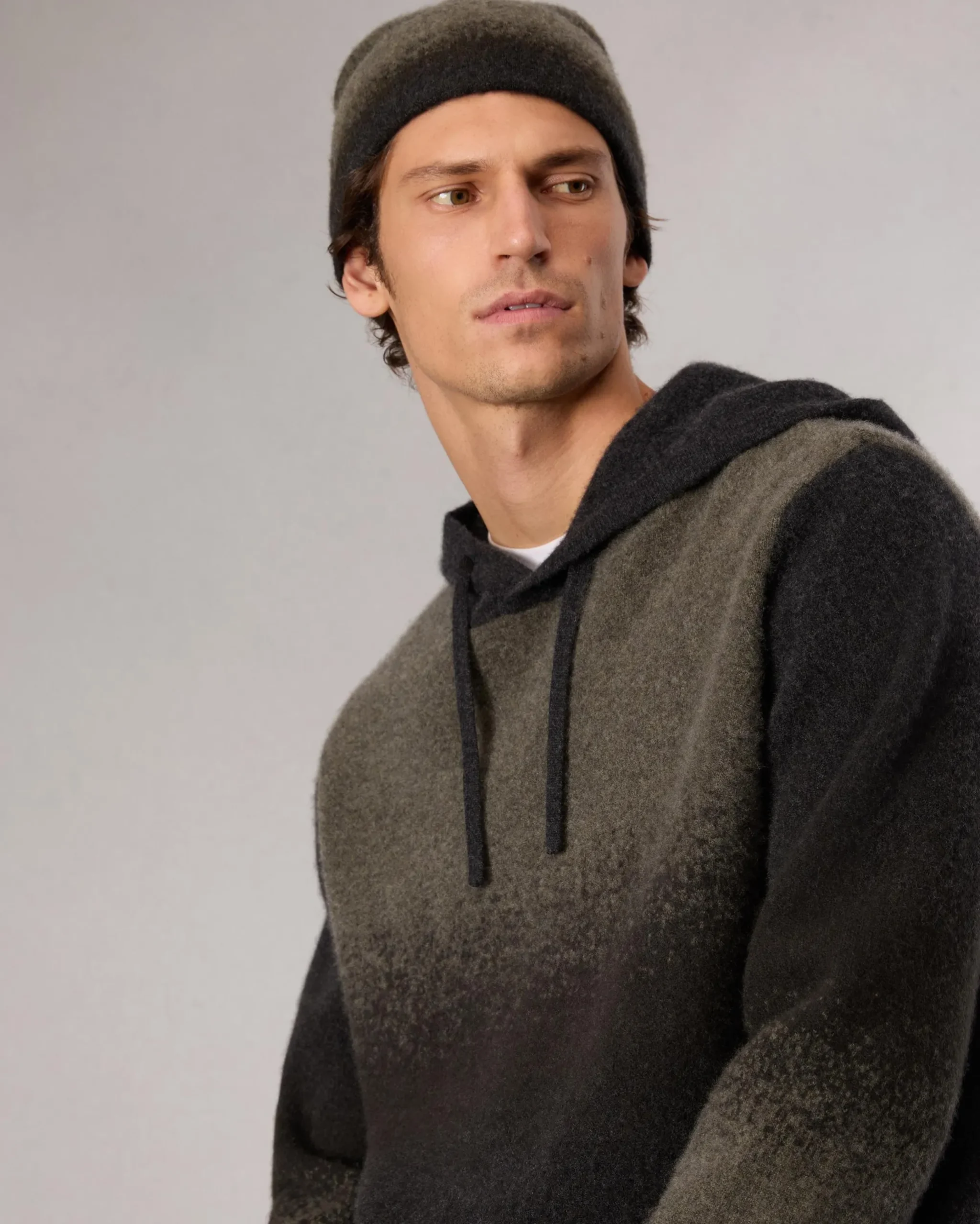 An ombre gradient creates visual dimension in this beanie hat, which is knit from a wool-cashmere blend and lightly brushed for extra softness.