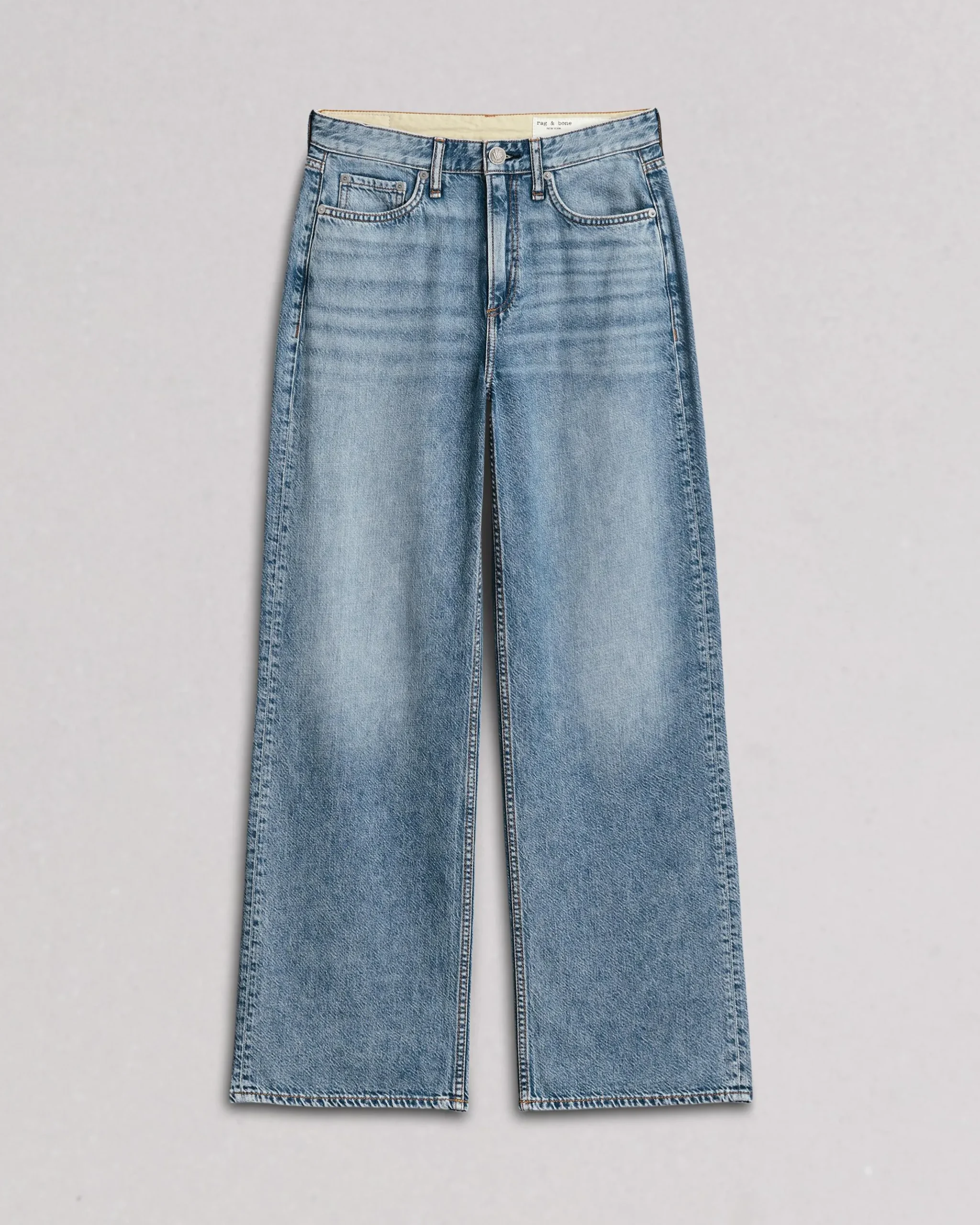 Relaxed fit, mid-rise, wide leg jeanSize 26: 11 5/8″ rise, 31 1/2″ inseam, 20″ leg openingModel is 5’10” wearing a size 25