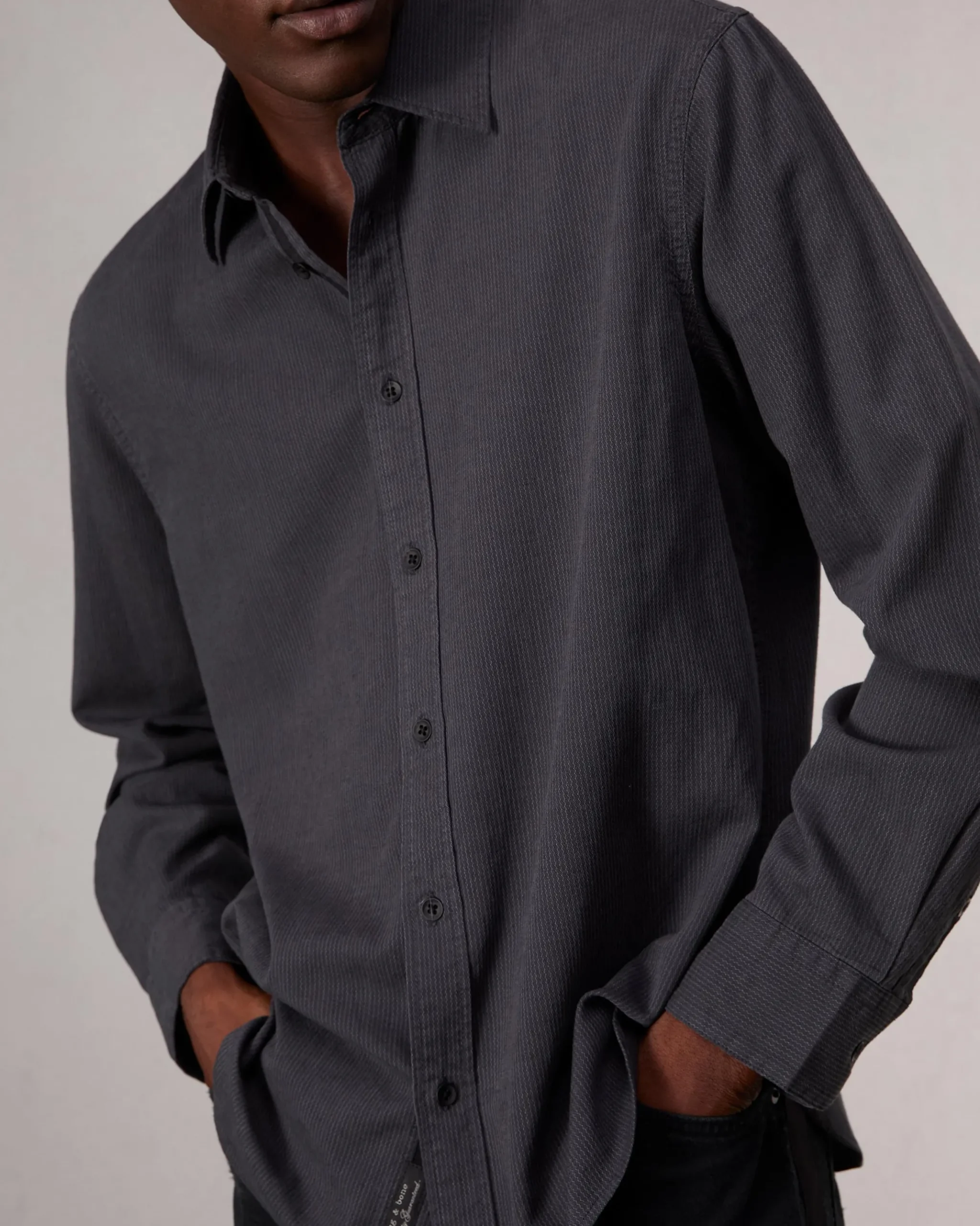 In a winking nod to our retro-inspired Harvey knits, this long-sleeve shirt is crafted from a cotton-blend dobby fabric with a unique stitch that enhances its subtle zig-zag stripes.