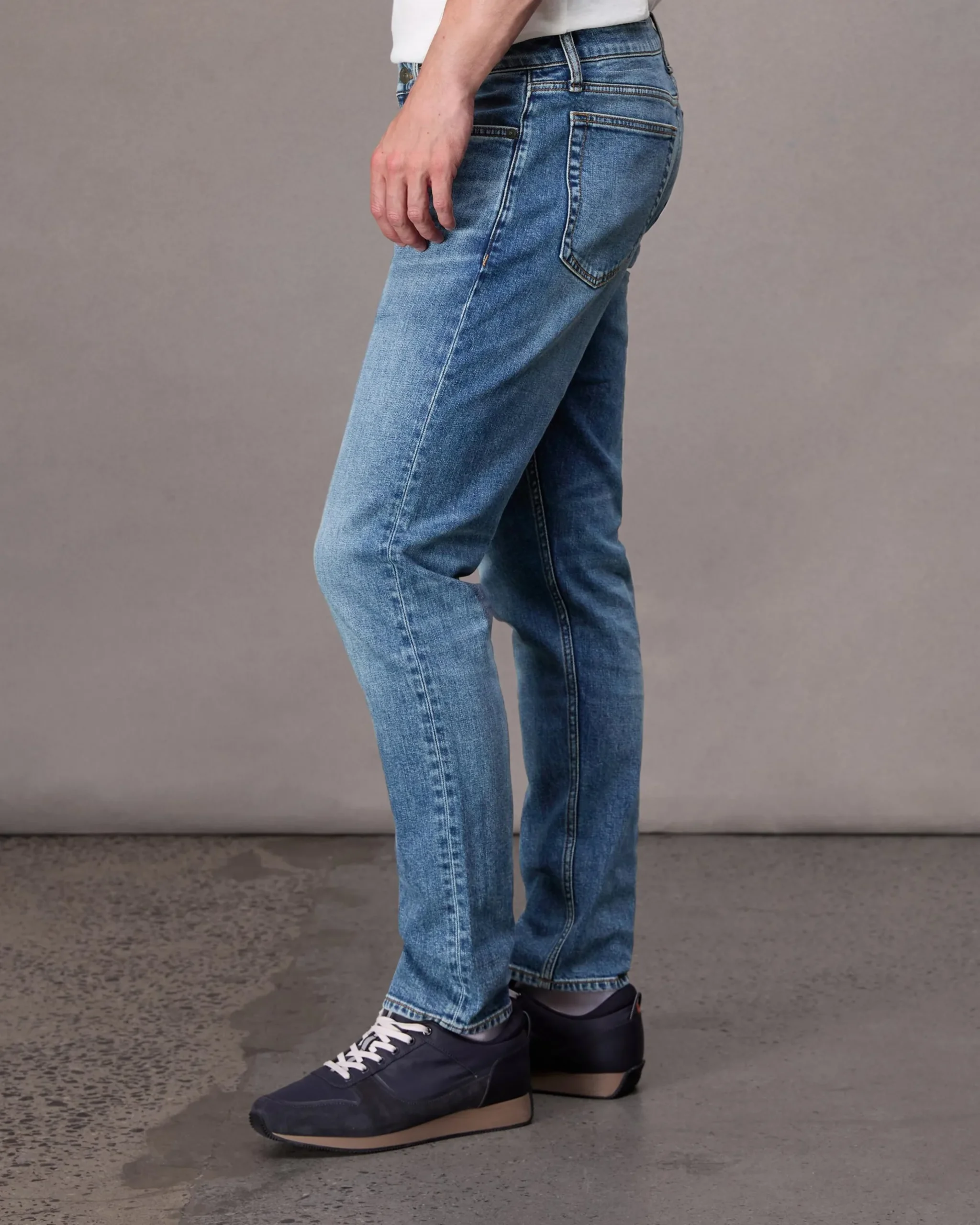 Fit 3. Mid-rise with an athletic fit engineered for mobility. Crafted from our Authentic Stretch Denim for a heritage look with a touch of stretch. In Devon, a light indigo wash with a clean hem.
