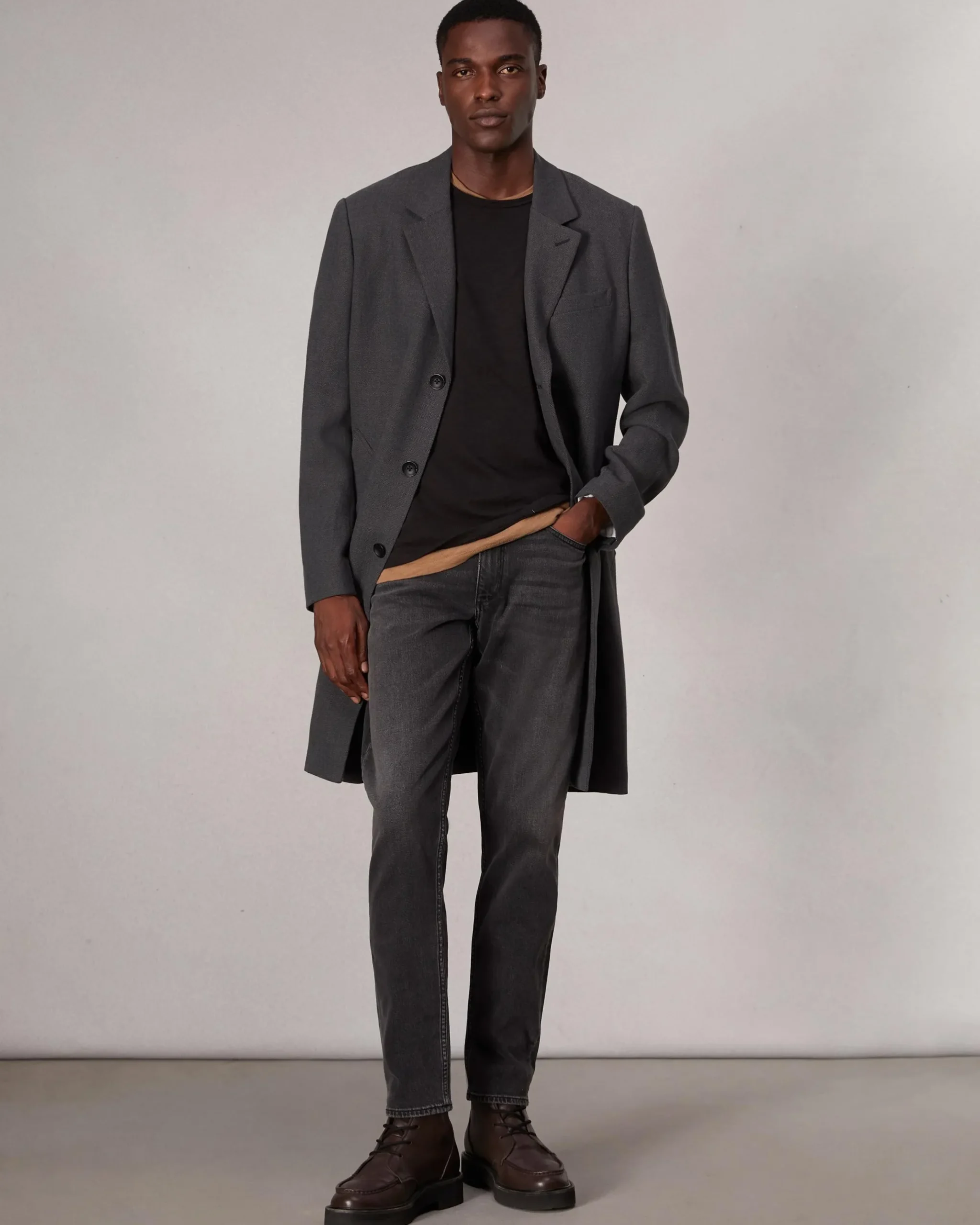 Fit 3. Our athletic fit engineered for mobility. Mid-rise with additional room in the hip and thigh and a subtly tapered leg. Crafted from Authentic Stretch, a selvedge-inspired denim with an optimal touch of shape-holding stretch. In Ashland, a slightly faded medium grey wash.