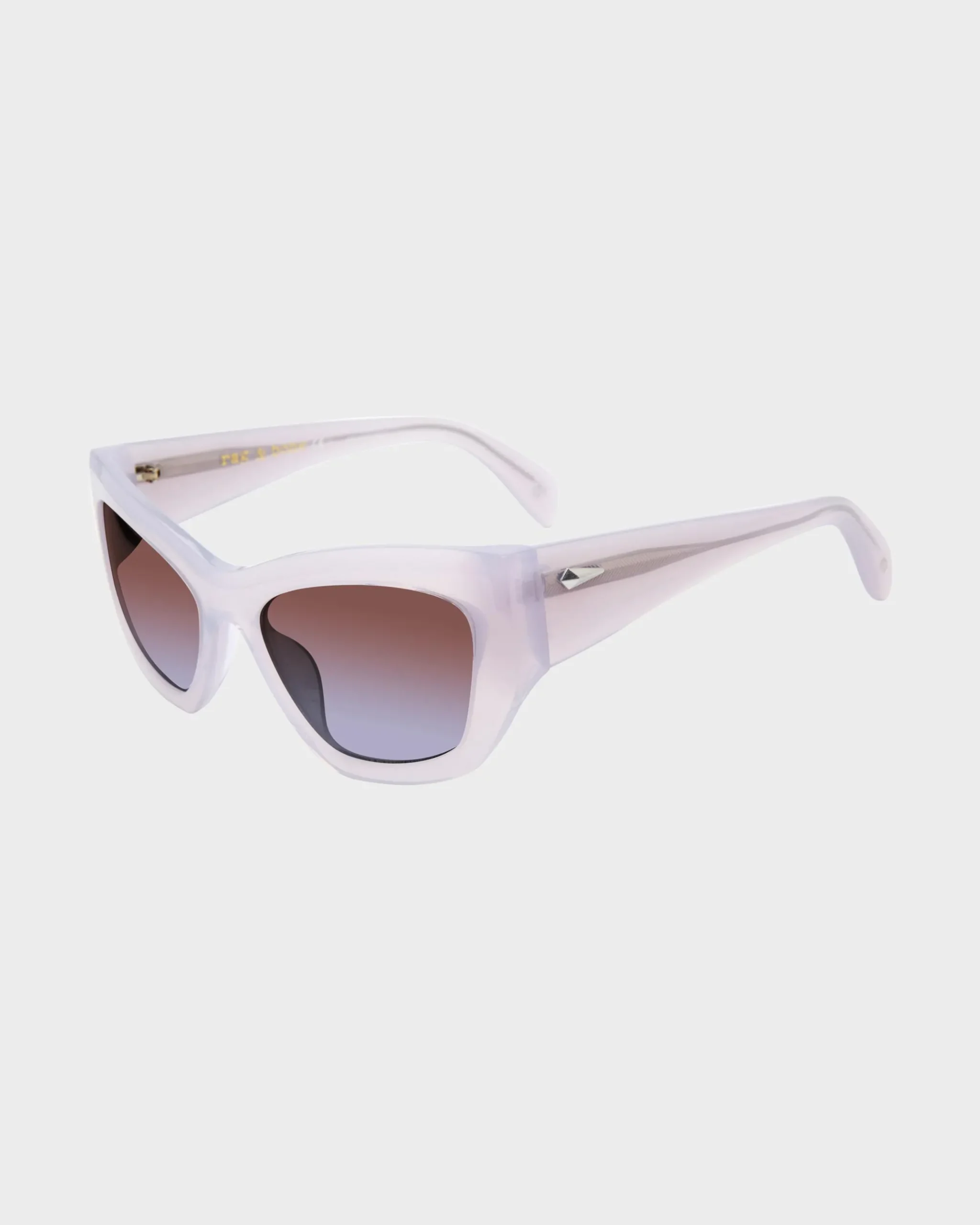 A cat eye silhouette with an eco acetate frame and 100% UV protection.