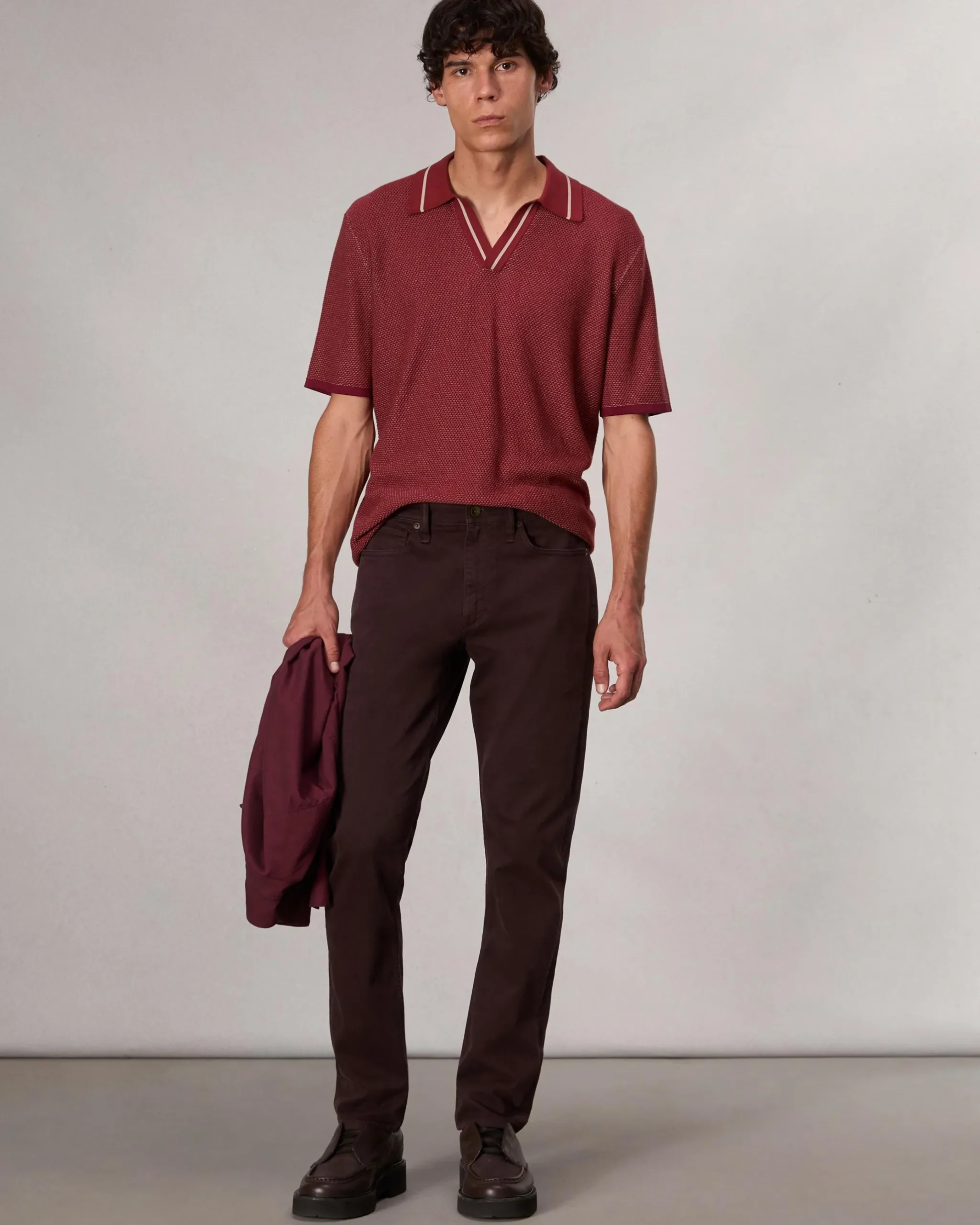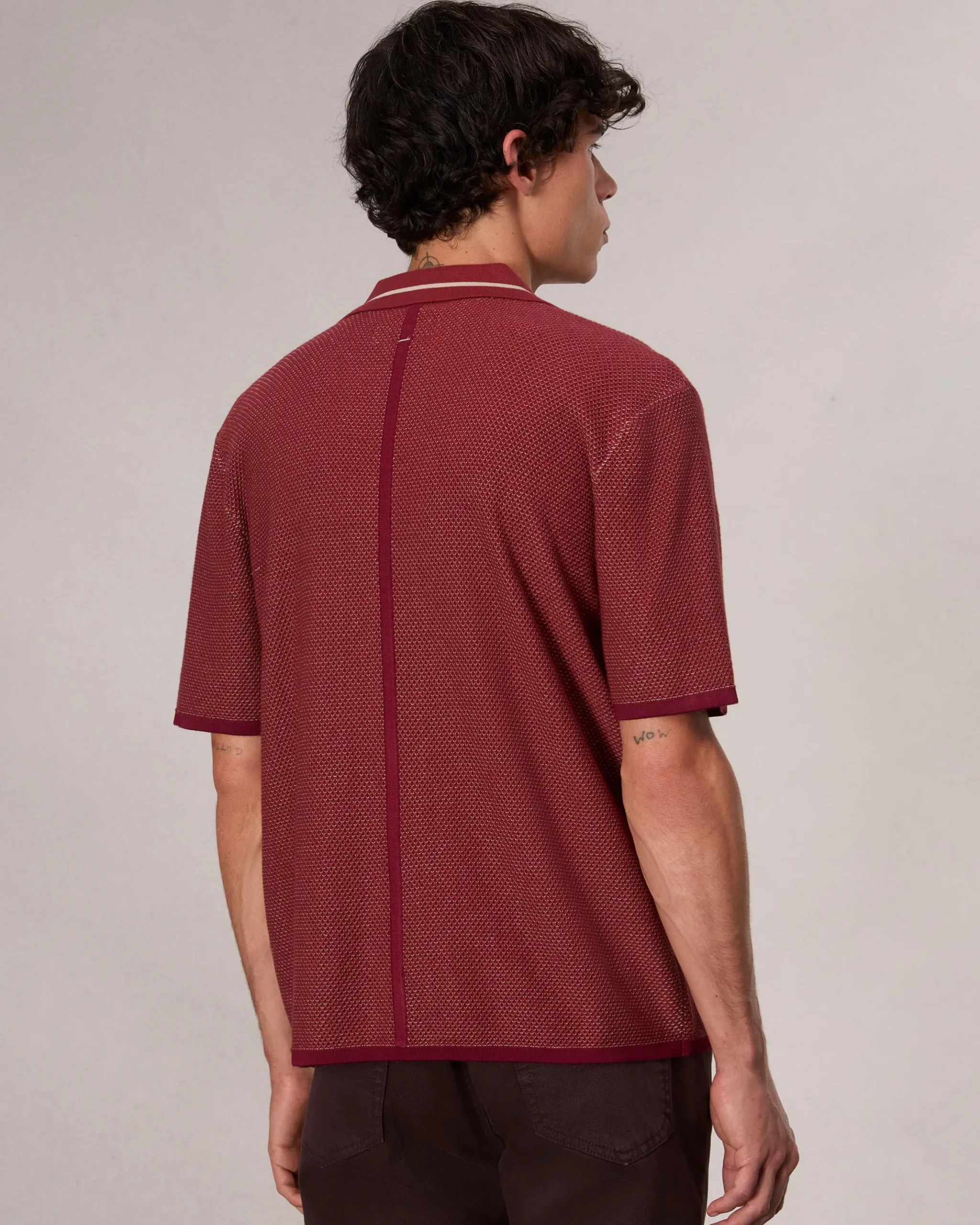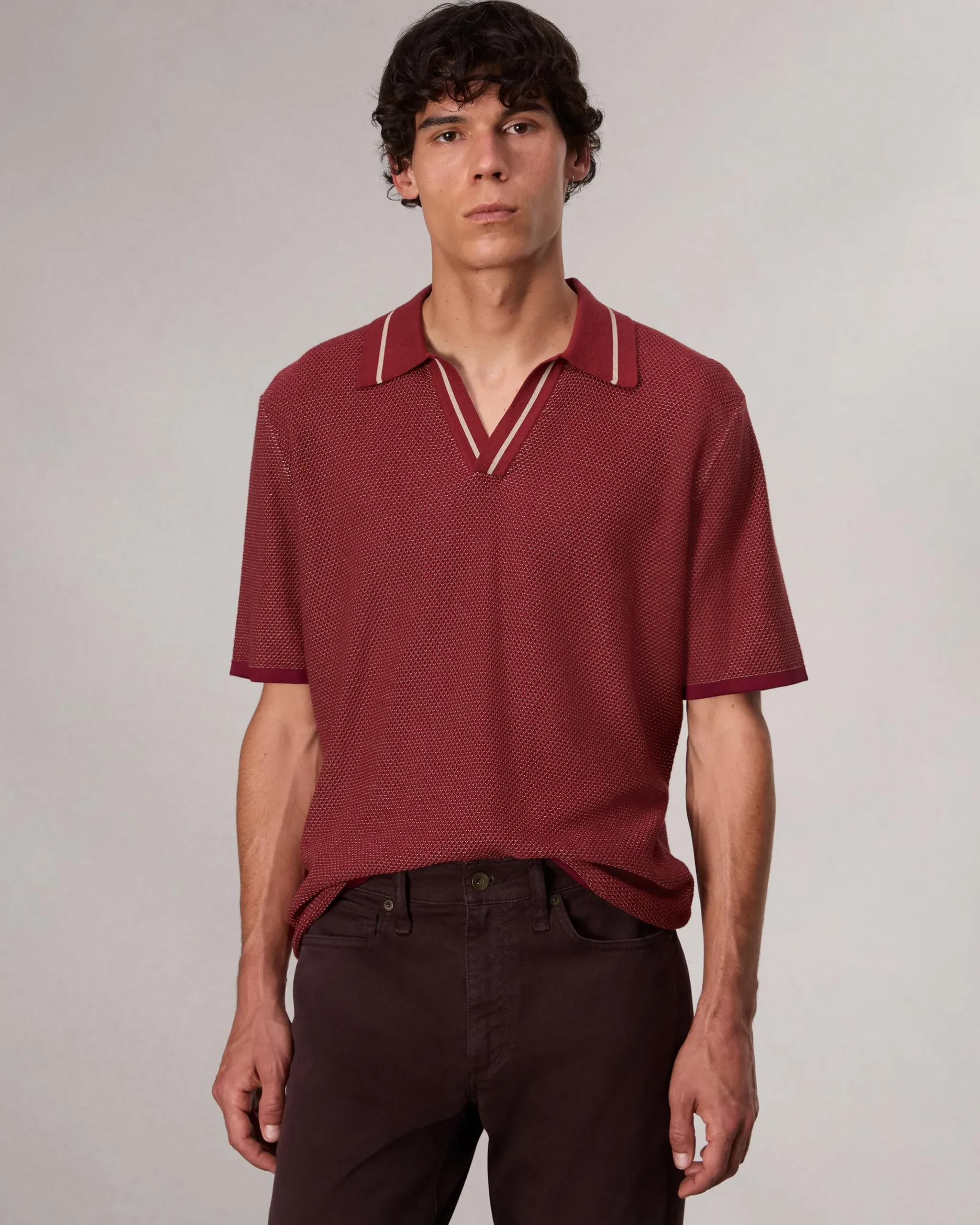 The comfort of a sweater meets the polish of a polo. Knit from a lightweight cotton blend with a vintage-inspired texture, this polo shirt is tailored with a striped Johnny collar and a classic fit.