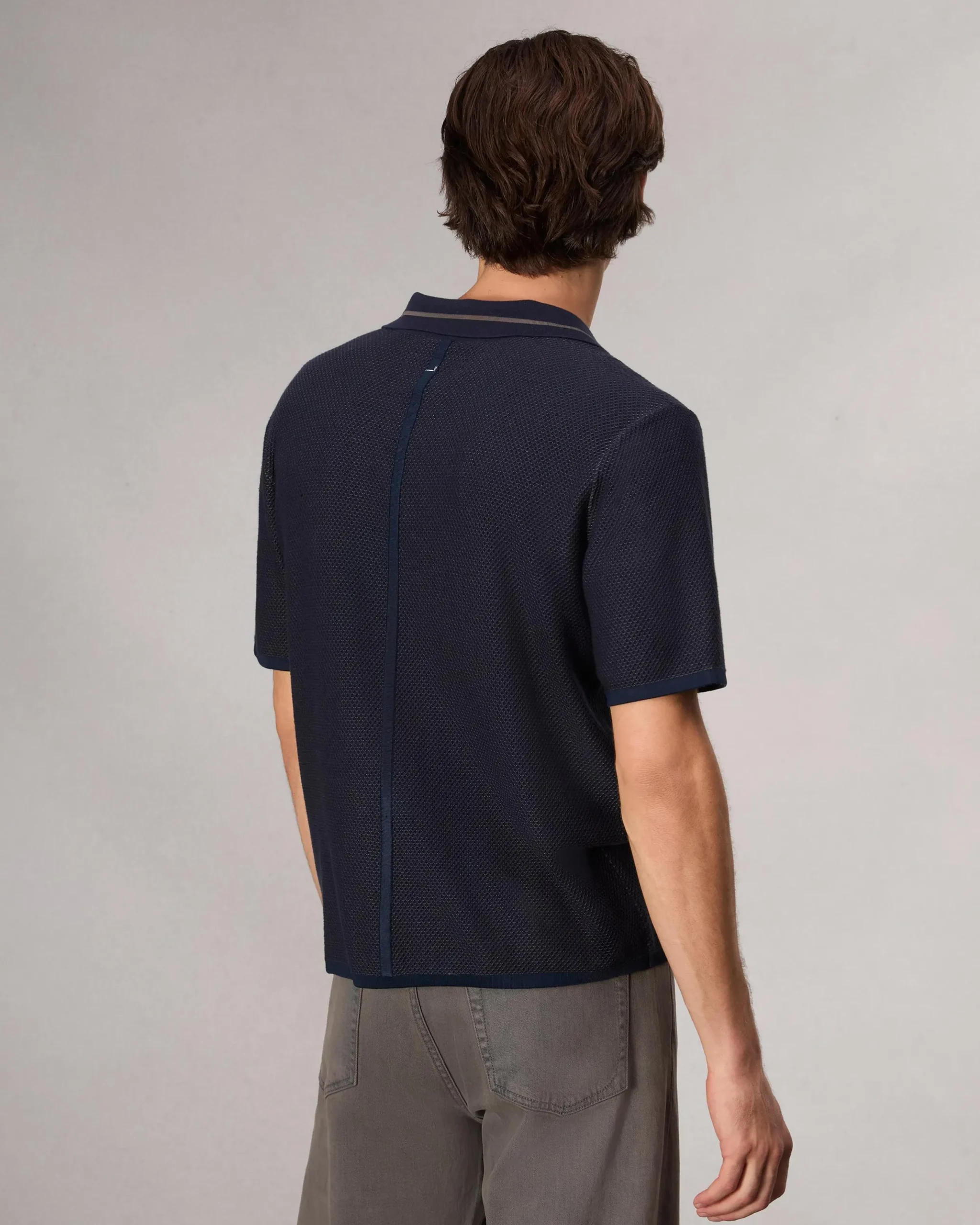 The comfort of a sweater meets the polish of a polo. Knit from a lightweight cotton blend with a vintage-inspired texture, this polo shirt is tailored with a striped Johnny collar and a classic fit.