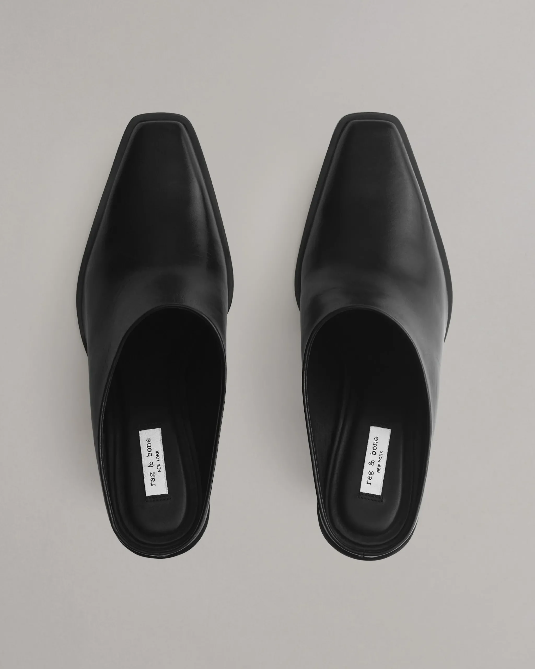 Updated as a mule, this slip-on style is crafted from smooth leather and retains hallmarks of our iconic ankle boot, including a squared-off pointed toe and stacked heel. Inside, you’ll find dual-density antimicrobial foam insoles: OrthoLite® Lazy-Hybrid™ for custom-fit comfort, and OrthoLite® Recycled for stability and support.