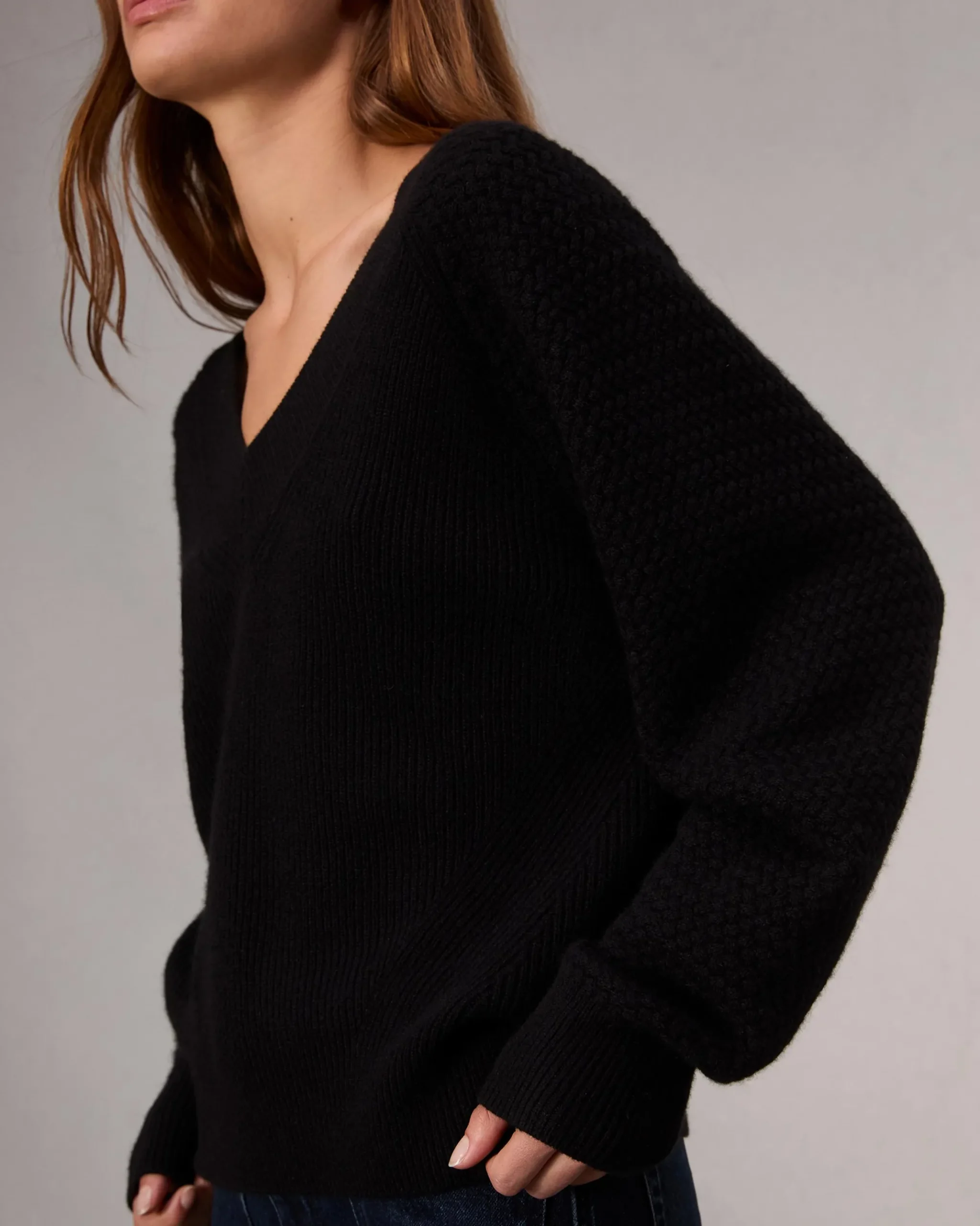 Crafted from pure cashmere, this oversized V-neck sweater plays with texture and proportion by mixing a ribbed-knit body with exaggerated, basket weave-stitched raglan sleeves.