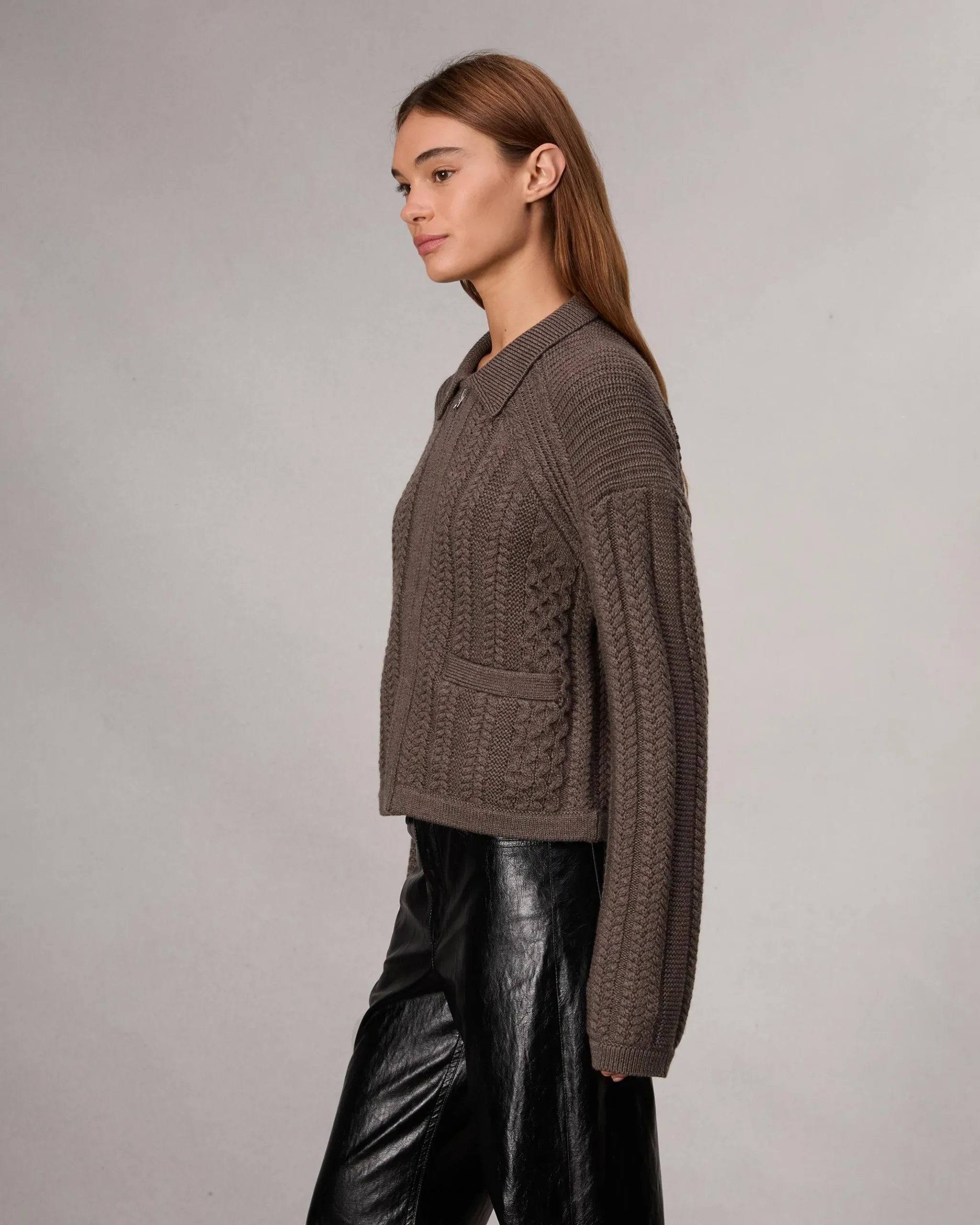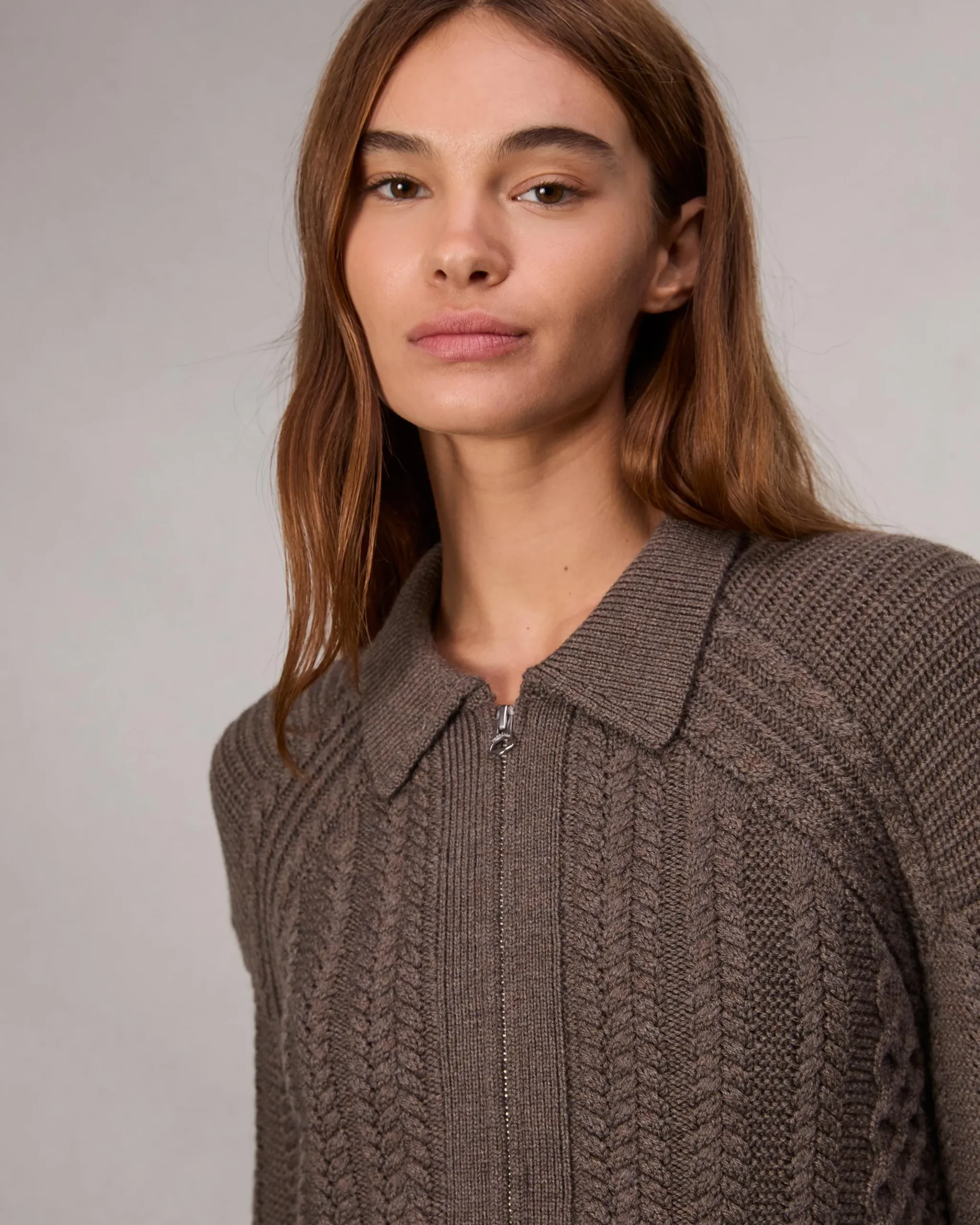 Crafted from cable-knit merino wool that’s ultra-soft and insulating, this zip cardigan sweater is perfect for transitional weather. Its relaxed, slightly cropped fit makes it an effortless top when worn alone or an easy third piece when layered like a jacket.