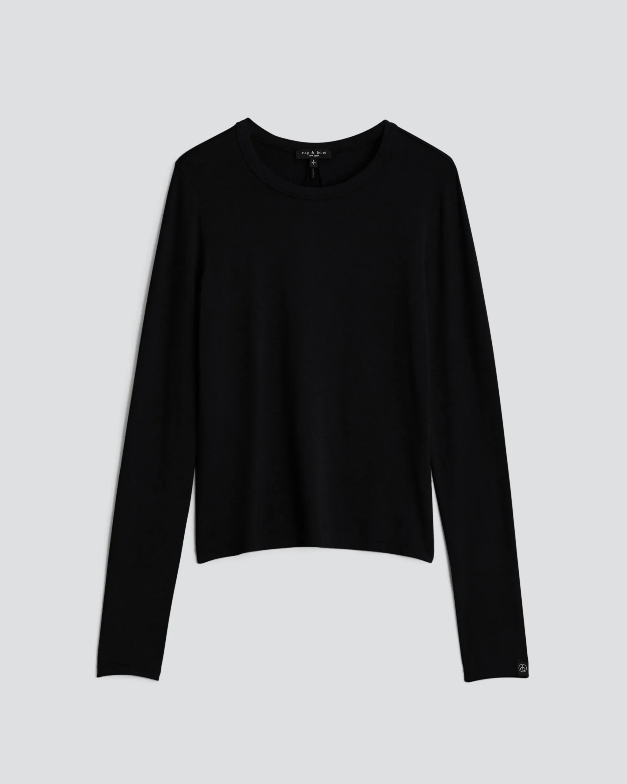 Timeless. Authentic. Iconic. One of the building blocks of a perfect wardrobe.This cropped and fitted slim long sleeve tee is woven in a Lyocell blend for a distinctly silky feel that makes this the perfect layering piece. Style with virtually anything in your closet.