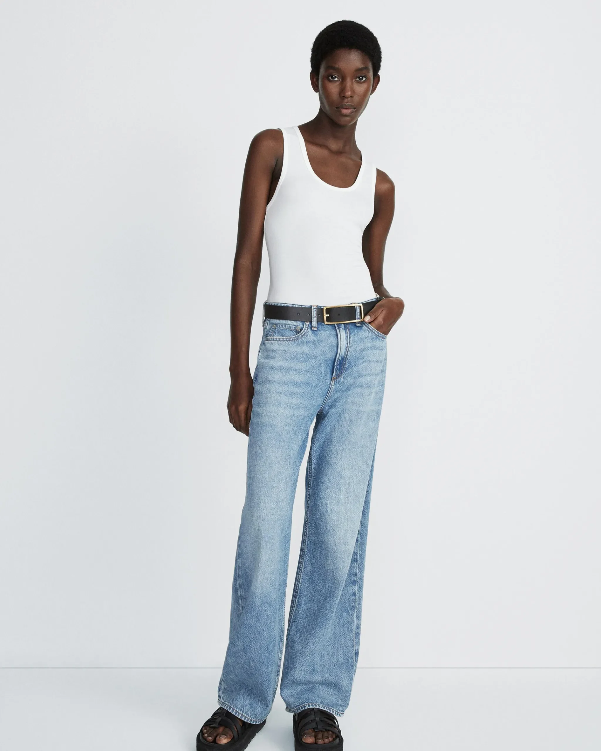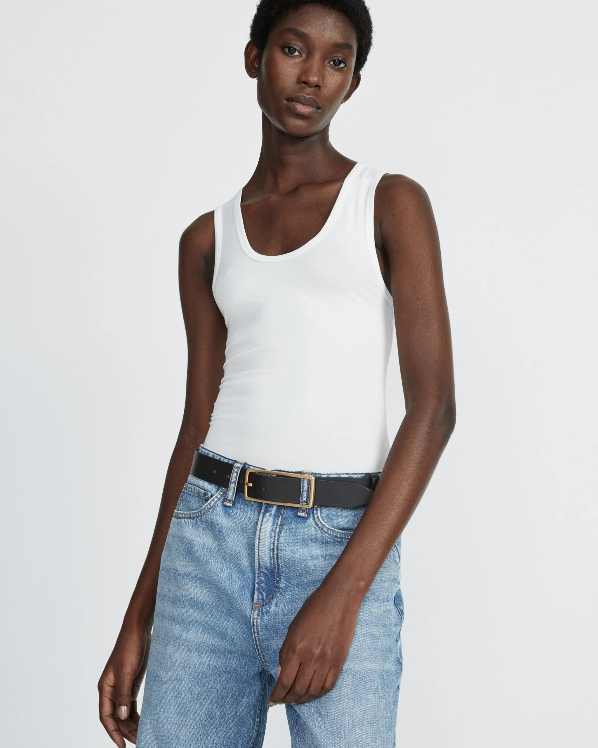 This fitted tank is woven in a Lyocell blend for a distinctly silky feel that makes the perfect layering piece. Dress it up with a blazer or dress it down with a pair of jeans and Retro Runners.
