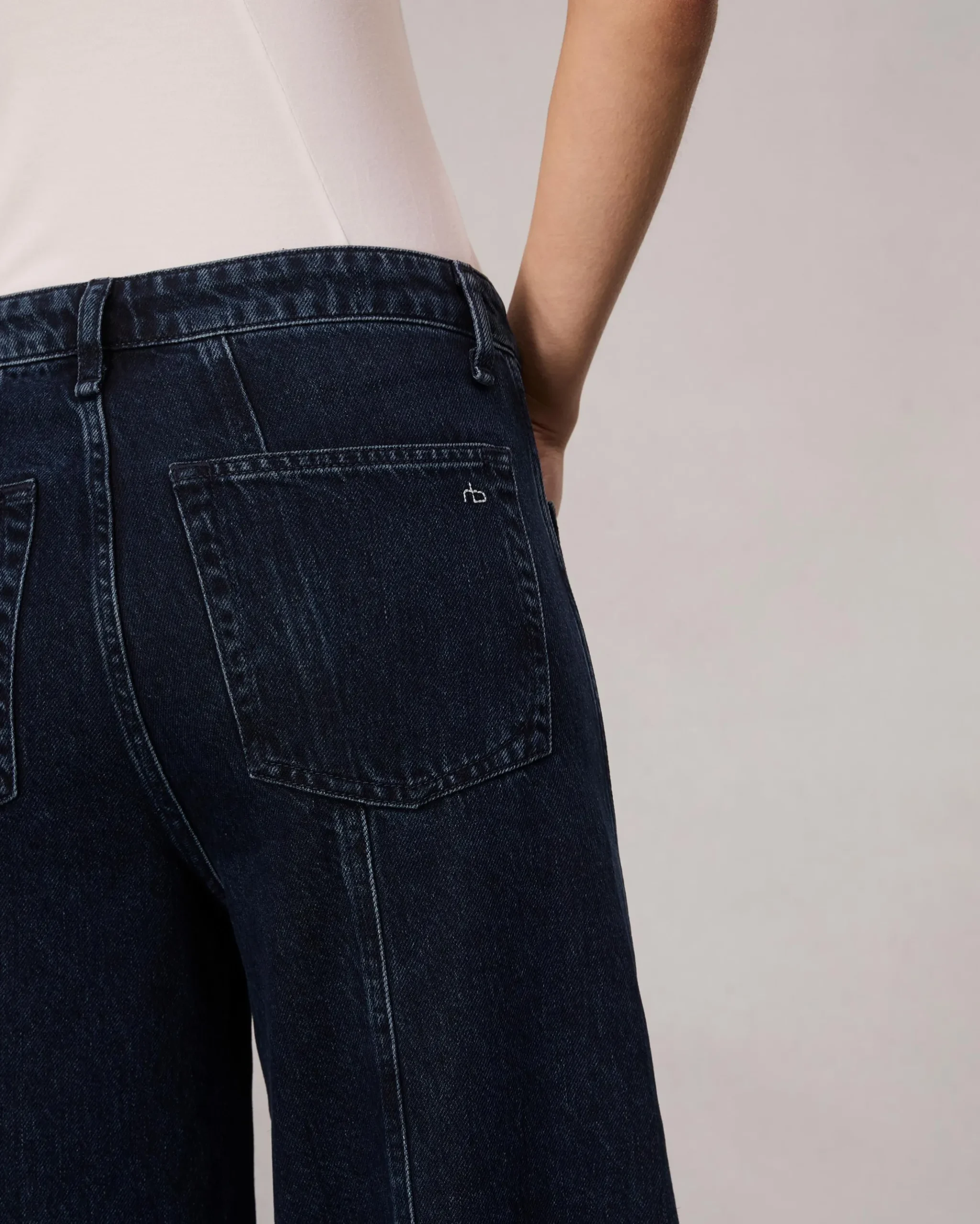 The Marina. These ultra-wide-leg high-rise jeans are finished with patch pockets and hems that were released, then cuffed, creating their unique look. Crafted from drapey, super-soft Lightweight Rigid denim that gets even more comfortable with every wear. In Elenna, a blue-black indigo wash.