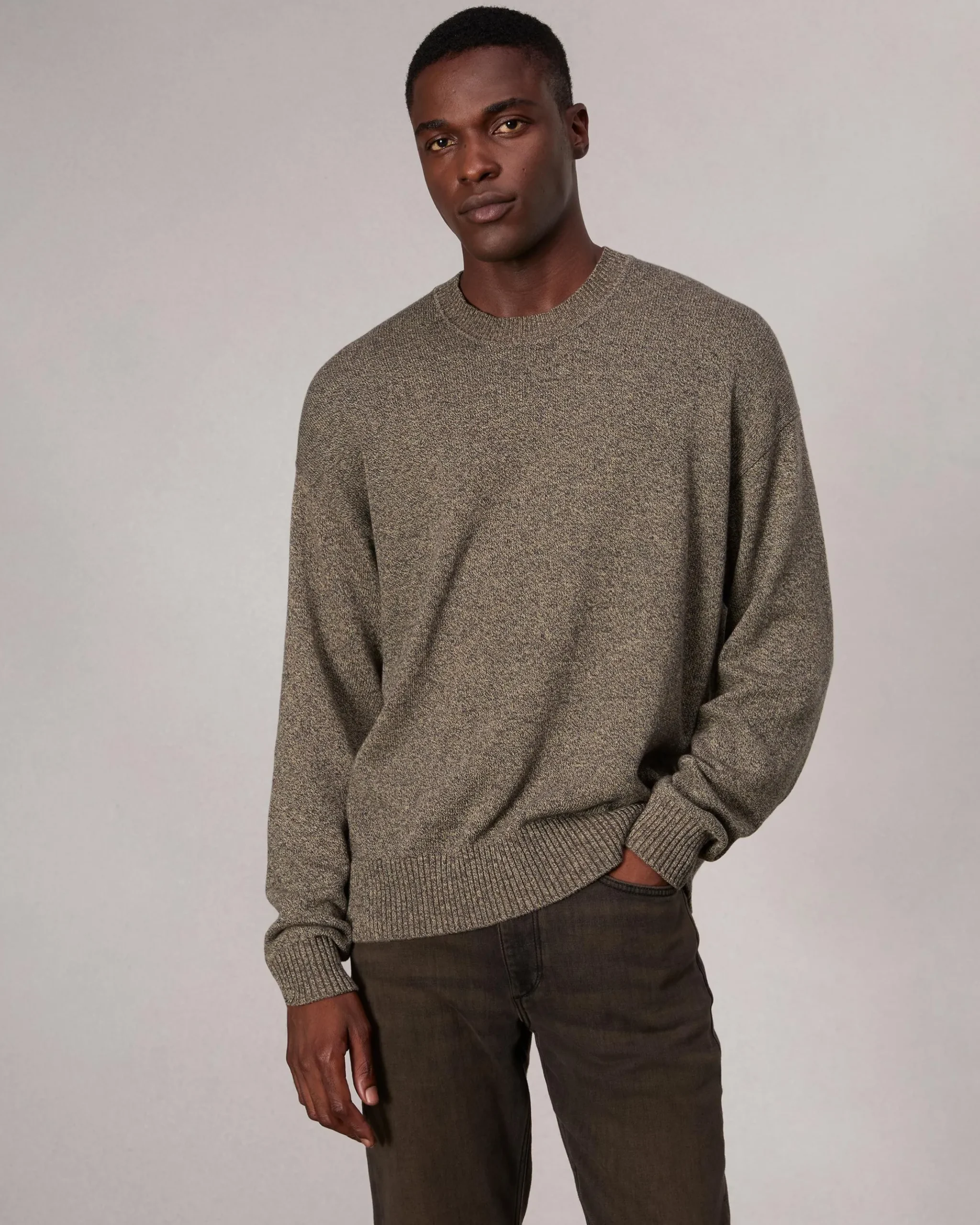 Five unique colors of organic cotton yarn are knit together to give this midweight, classic-fit crewneck sweater its marled texture and dimension.