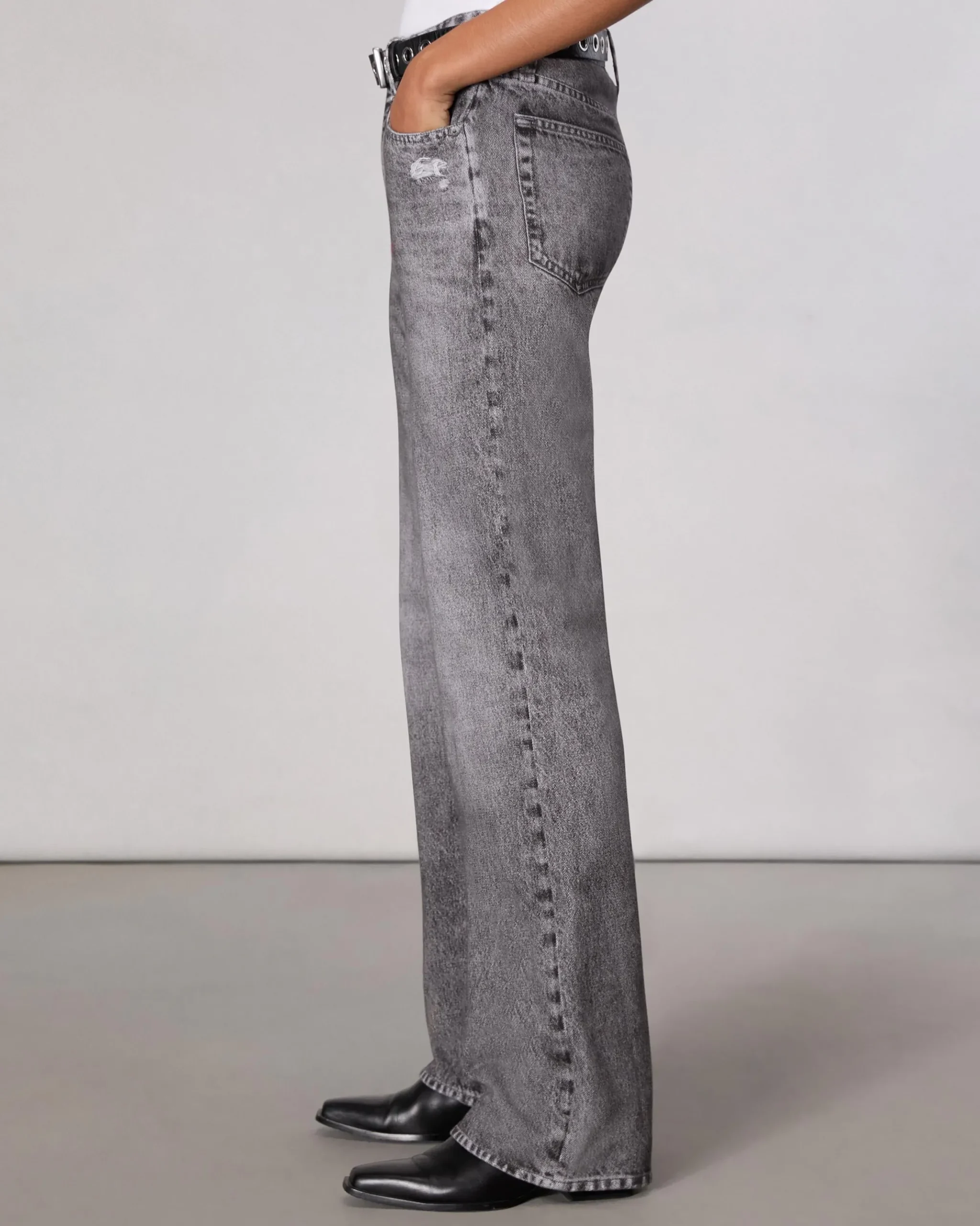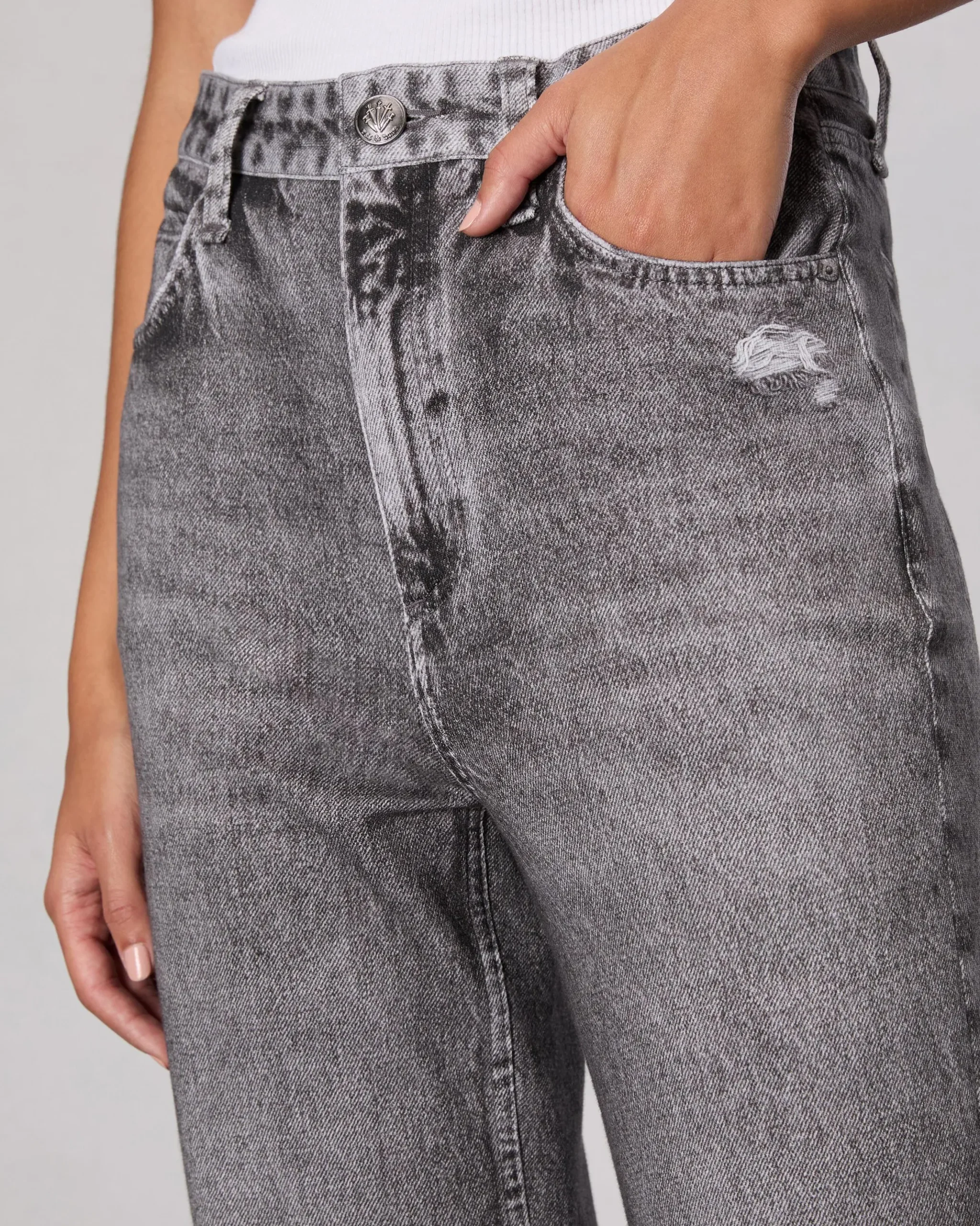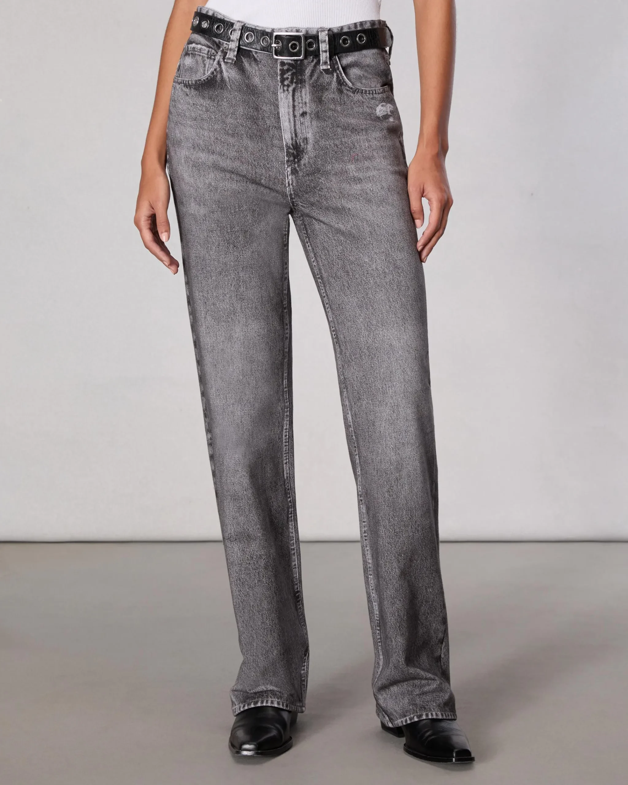 High rise, relaxed straight legSize 26: 12″ front rise, 30″ inseam, 19″ leg opening