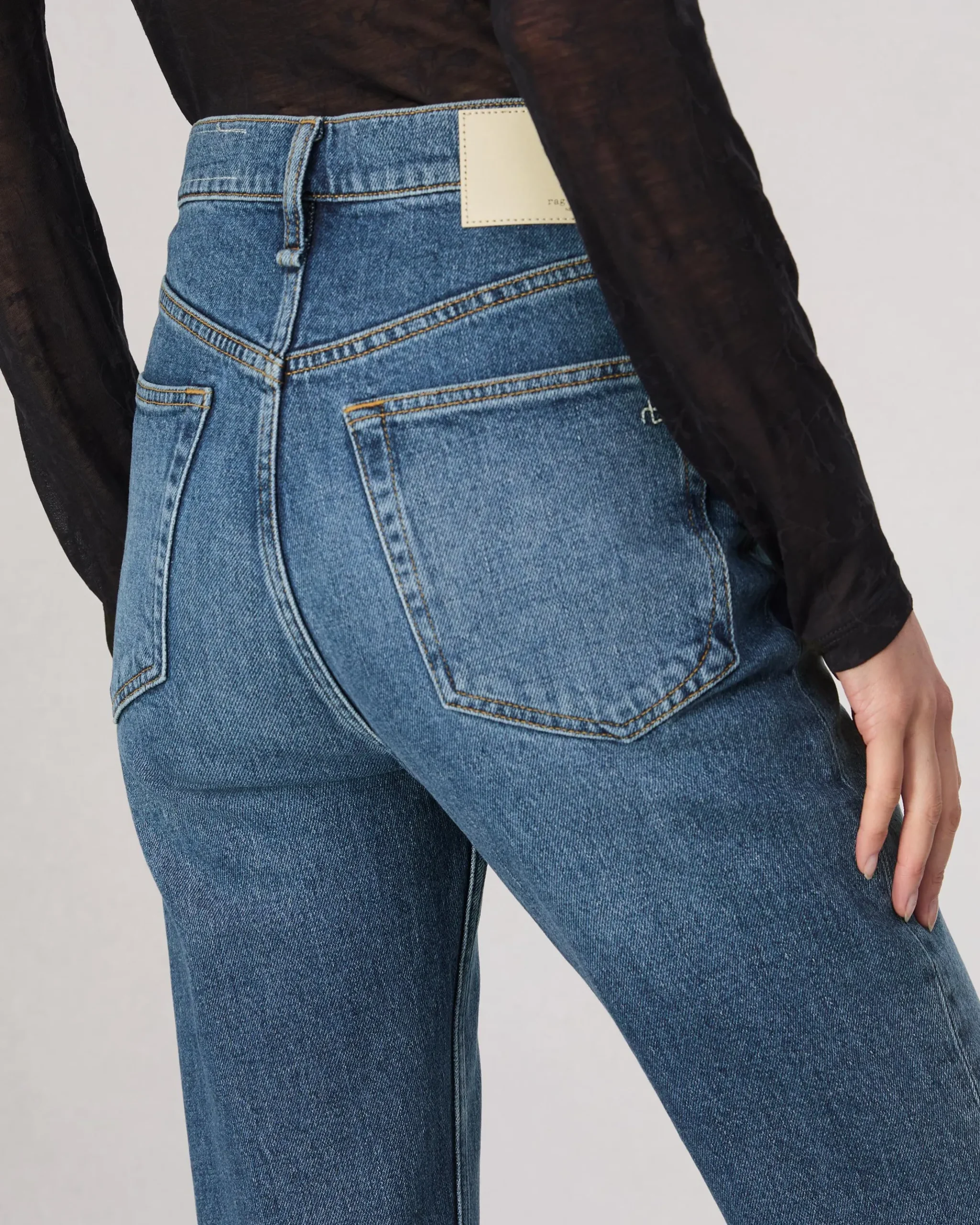 The Peyton. Our modern take on the timeless high-rise bootcut with a slim fit through the thigh and a subtly flared hem. Crafted in our Vintage Stretch for a structured look that’s actually soft and flexible. In Allie, a medium indigo wash with a clean hem.
