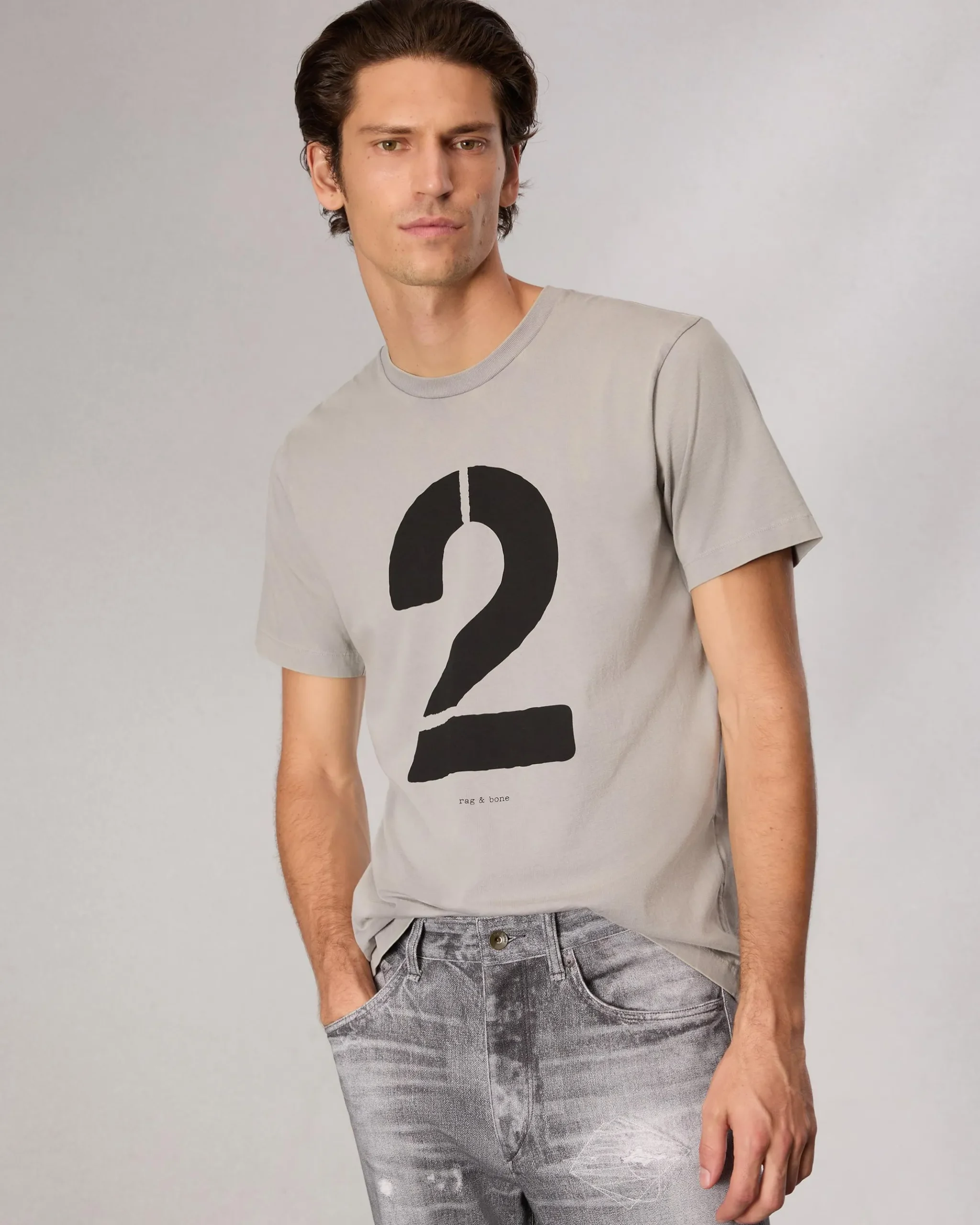 Numbers game. Part of a new capsule collection that nods to military-inspired stencil fonts, this Peruvian cotton T-shirt features a block-printed “2” pulled straight from the archives. It’s finished with a subtle enzyme wash for a more lived-in look and feel. Which tee will you choose?