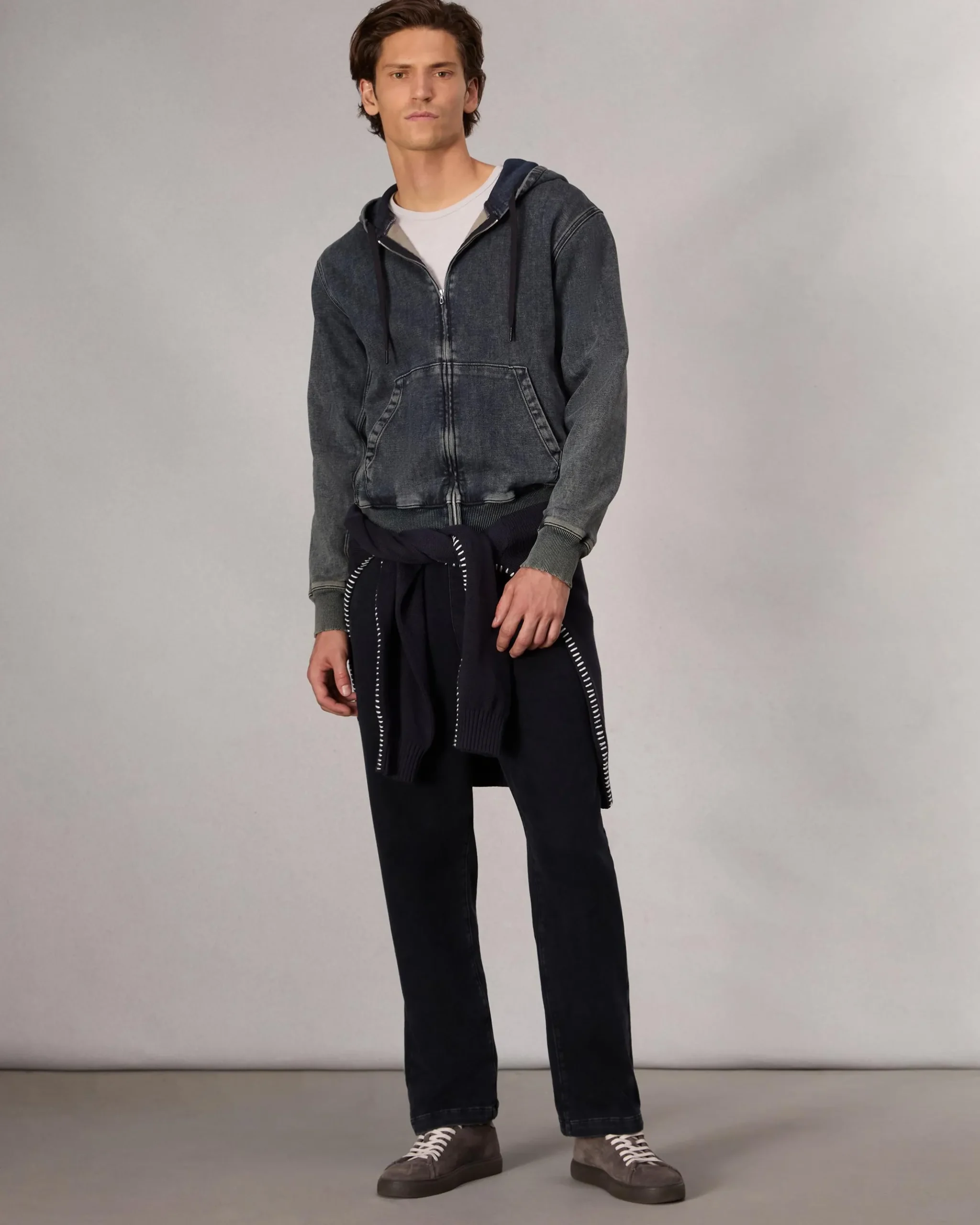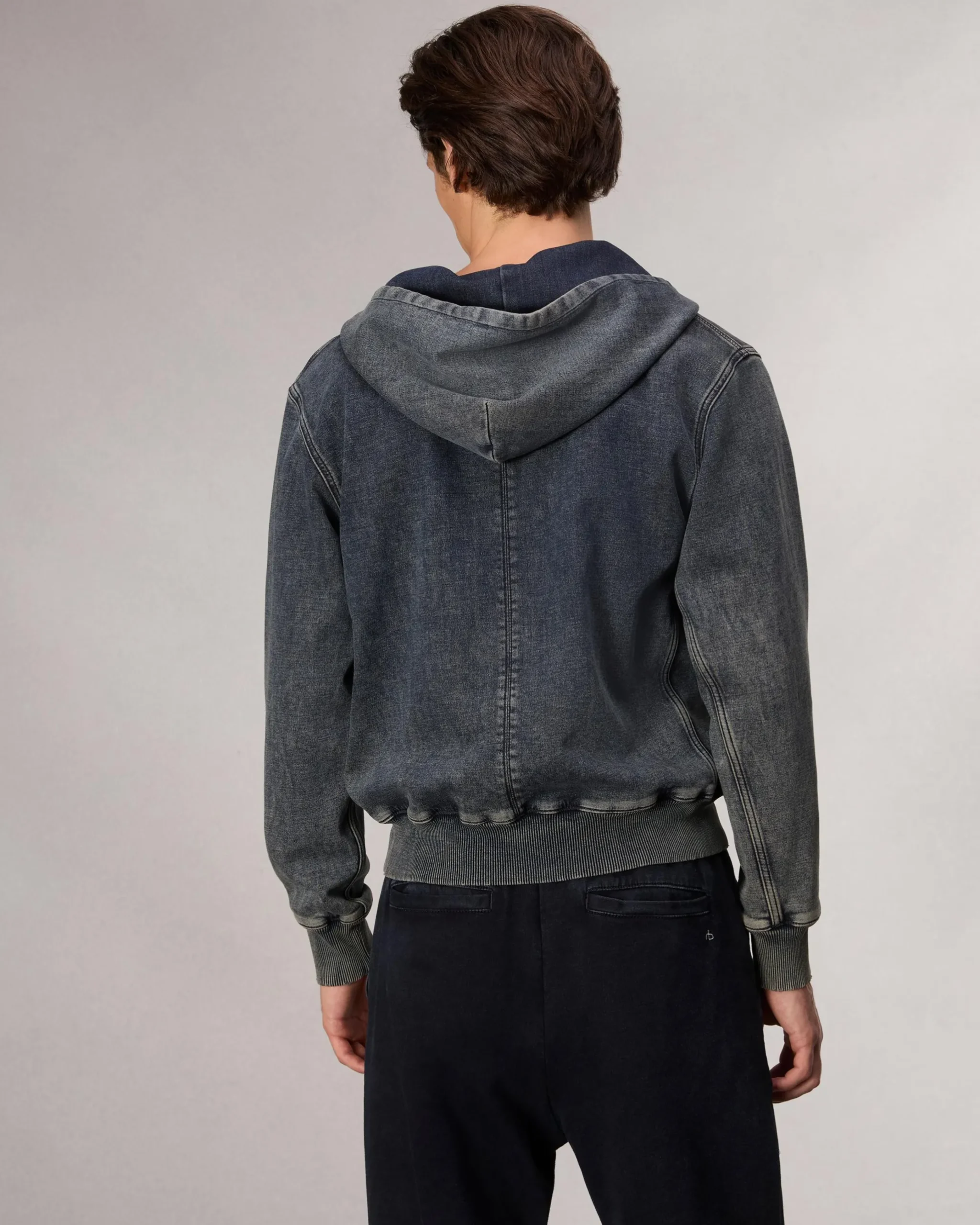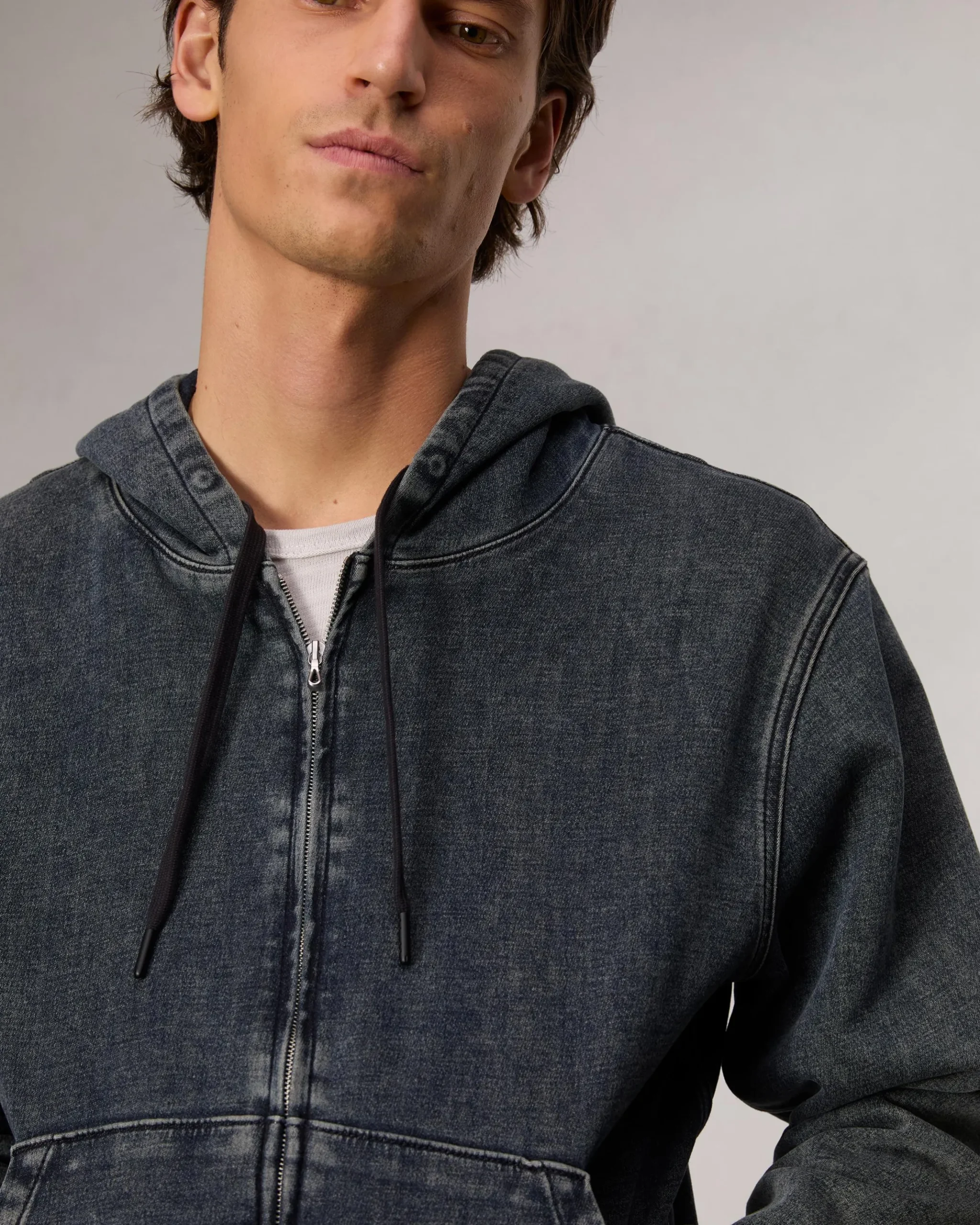 We took this zip-up hooded sweatshirt to the next level by crafting it in a relaxed fit from rbSTRIDE, our innovative denim with unparalleled stretch and softness. Fusing the classic cool of denim with the comfort of your favorite sweats. In Bradbury, a medium indigo wash.