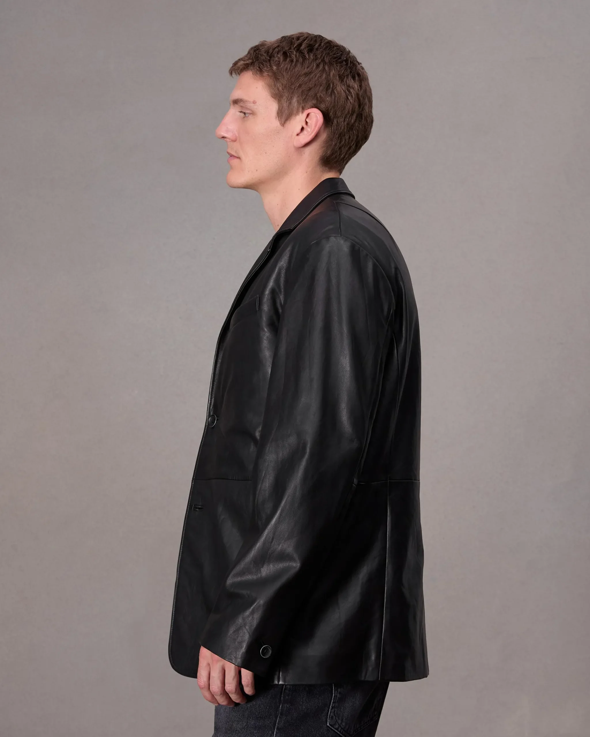 The Shift. A heritage blazer made modern. Crafted in smooth leather with a relaxed fit and unique tailoring details. Pair it with the Fit 4 Leather Trouser to complete the look.