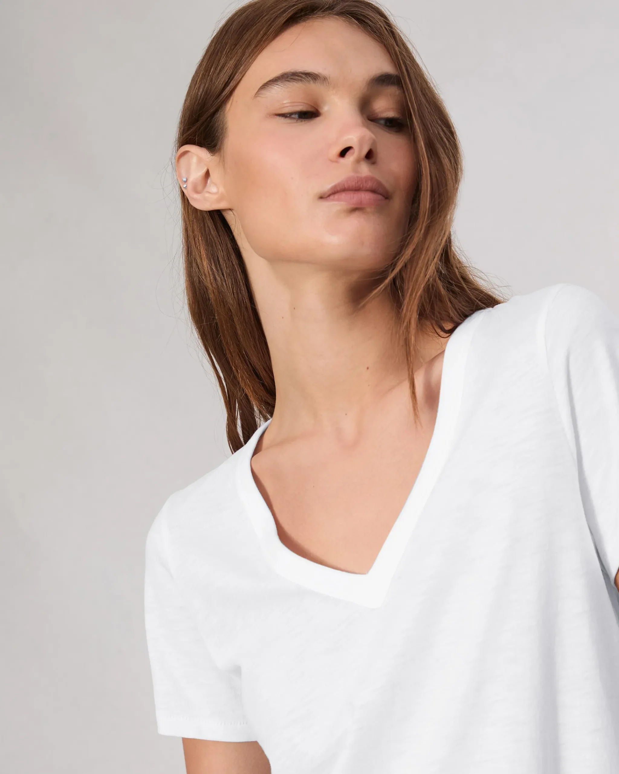 A timeless V-neck tee with a relaxed fit. Easy to wear with denim and sneakers or style under suiting for a modern look