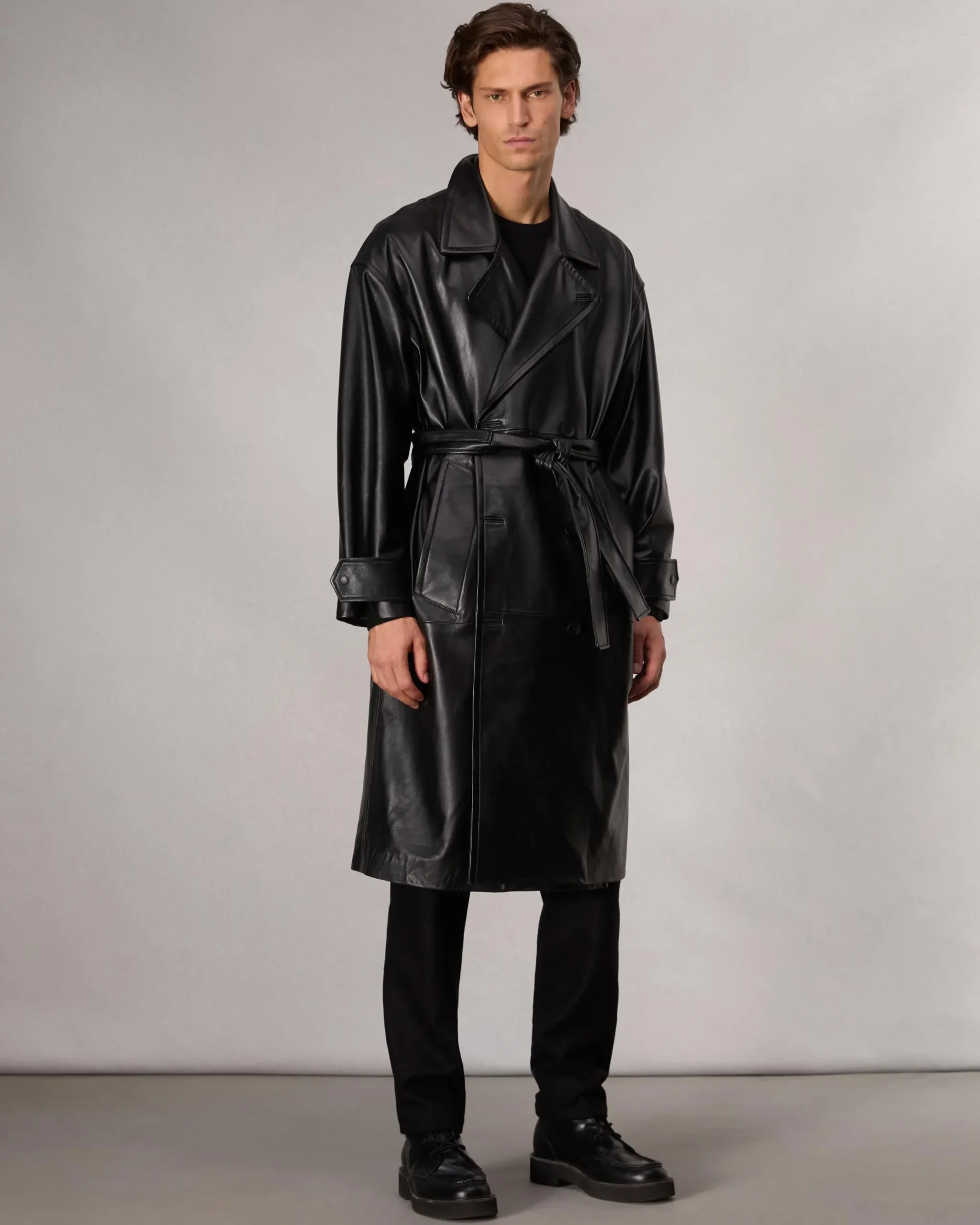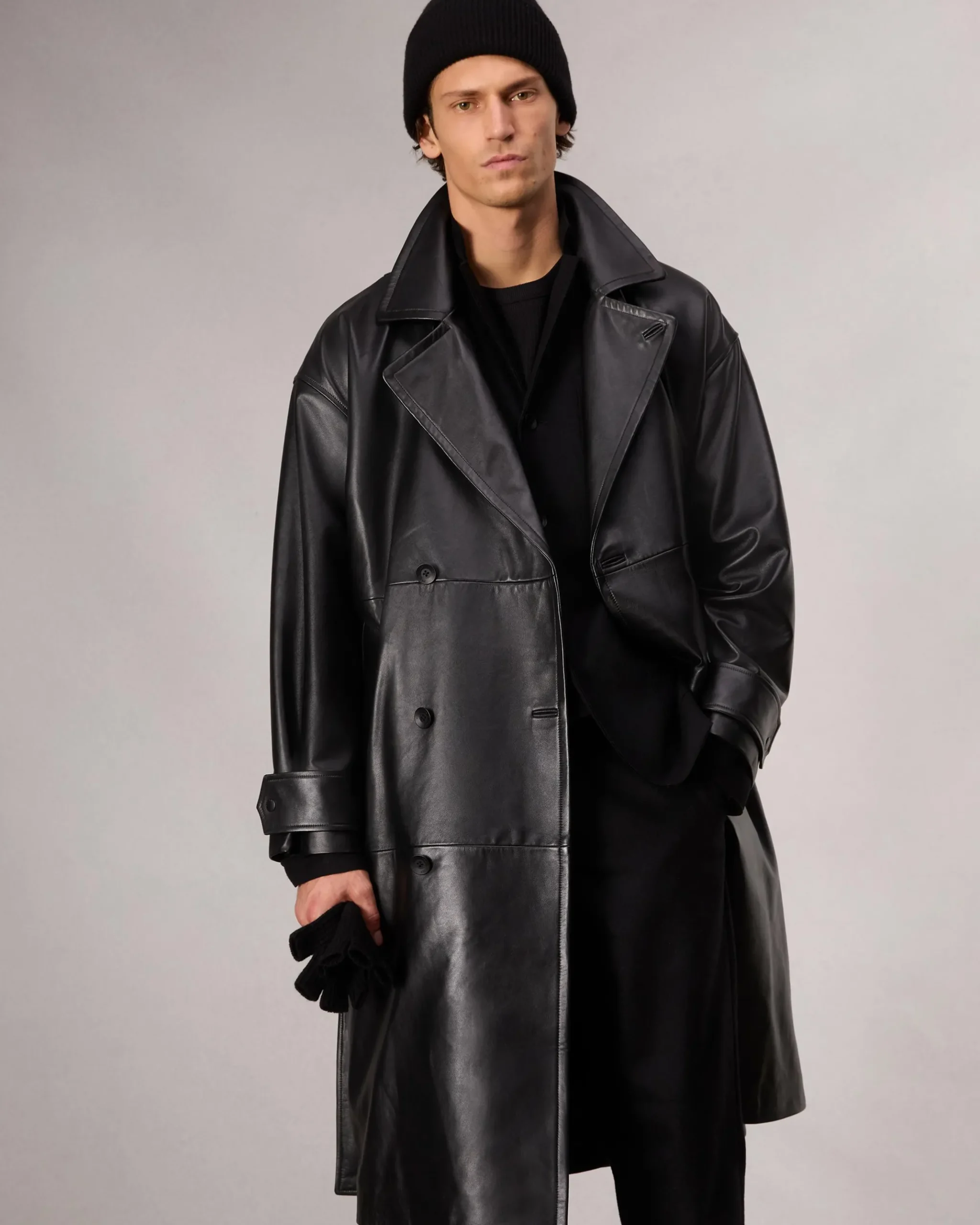 Outerwear at its finest. Expertly crafted from buttery-soft lamb leather, this double-breasted trench coat takes any outfit to the next level. Fine-tune its statement-making, oversized fit with the removable belt.