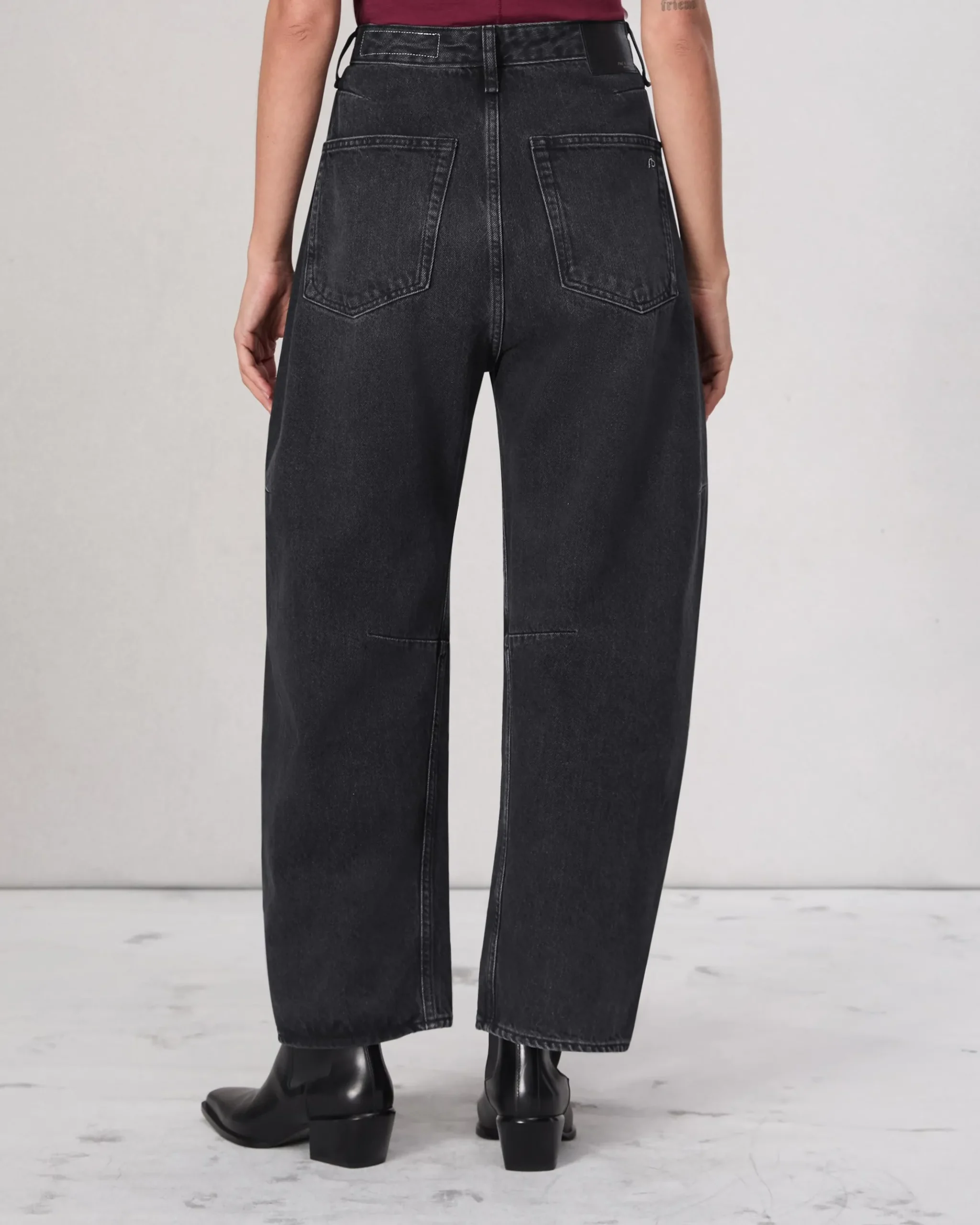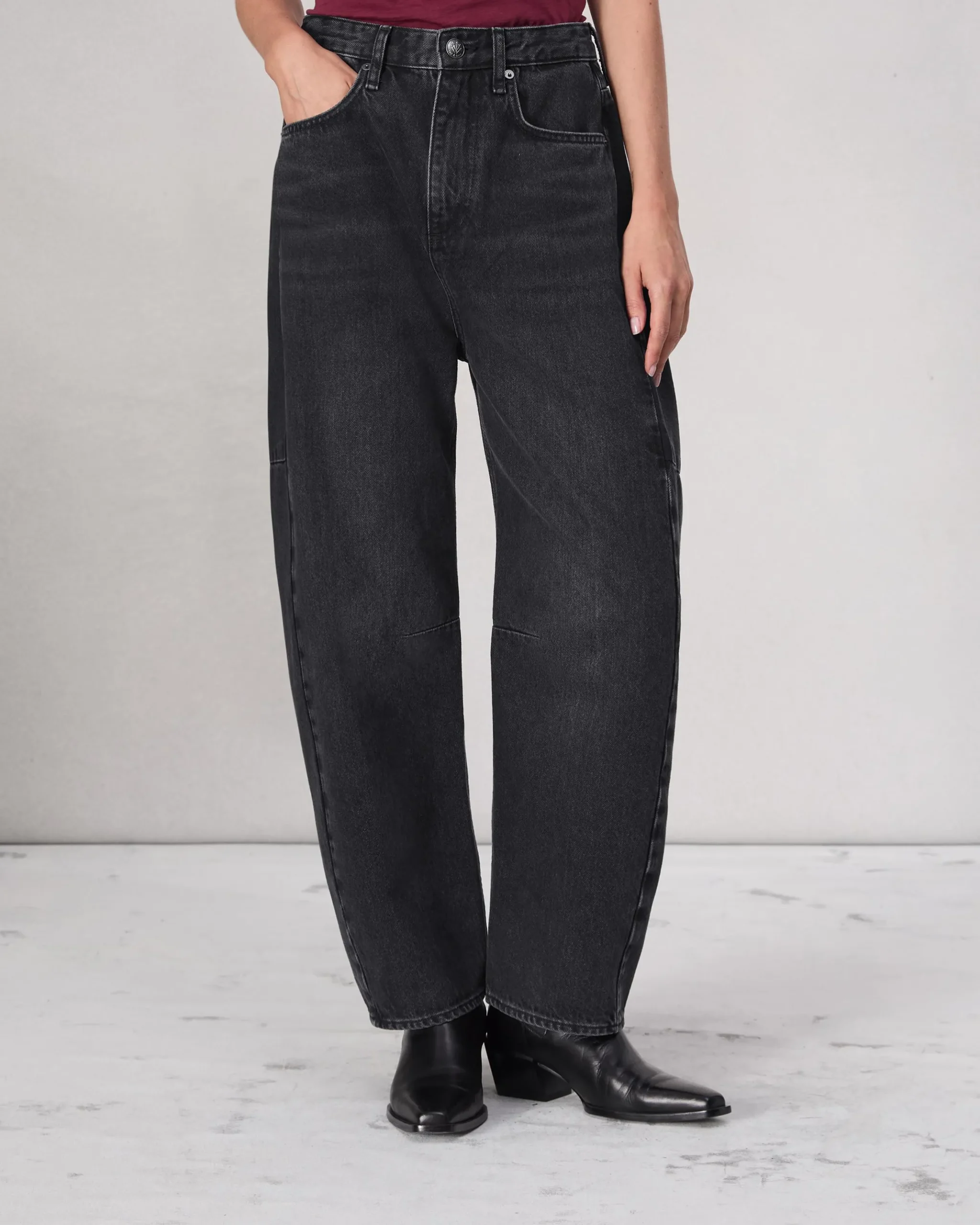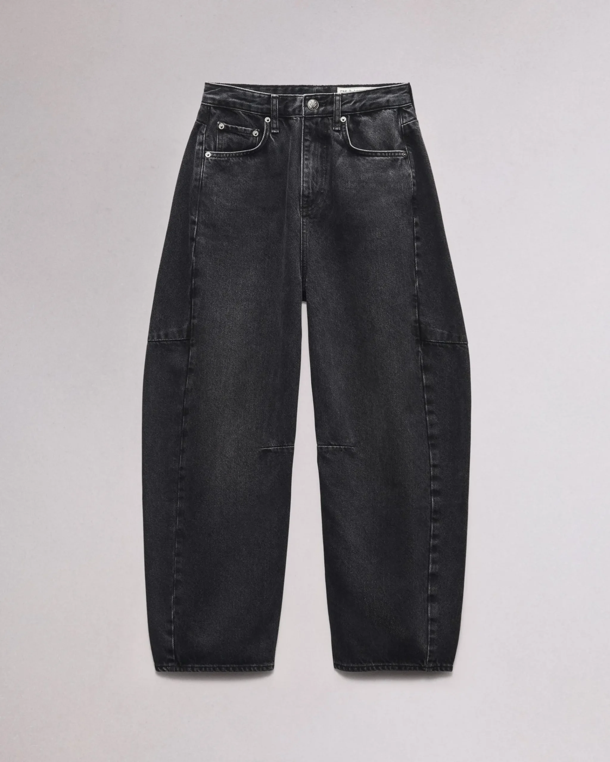 The Charlie. The perfect update to your denim lineup, defined by an exaggerated barrel shape with a relaxed, looser fit and a slight tapered curve that hits at the ankle. Crafted in Lightweight Rigid non-stretch denim that provides structure, but breaks in over time for a soft and comfortable feel. In Black Stone with a clean hem.