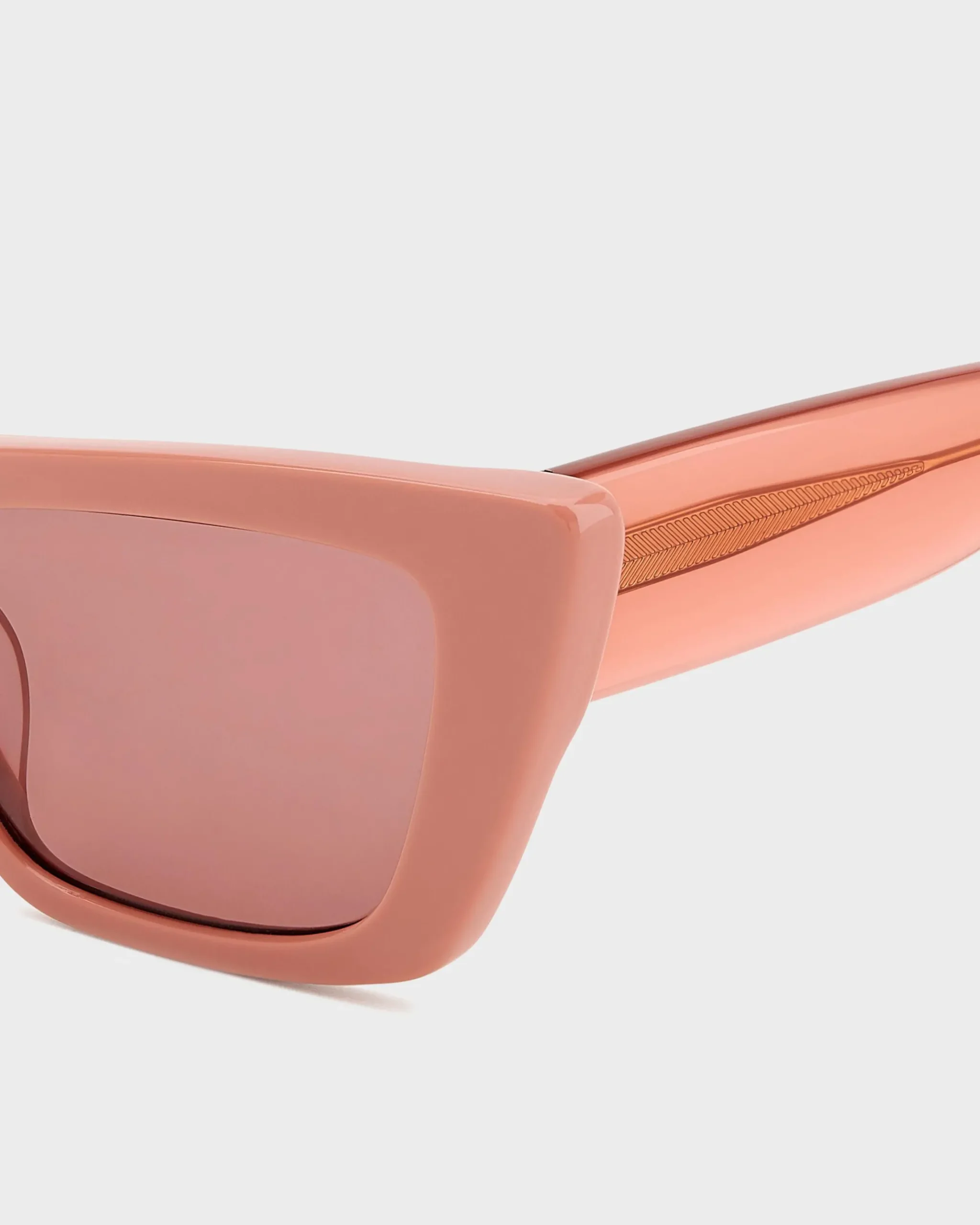 A cat eye silhouette with an acetate frame and 100% UV protection.