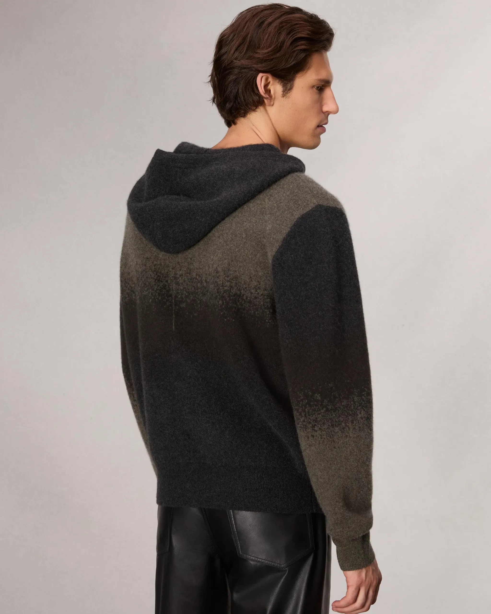 Combining the comfort of a sweater with the ease of a hoodie, this laid-back layer is crafted from wool and cashmere and lightly brushed for extra softness. Ombre gradient effects add cool, visual dimension.