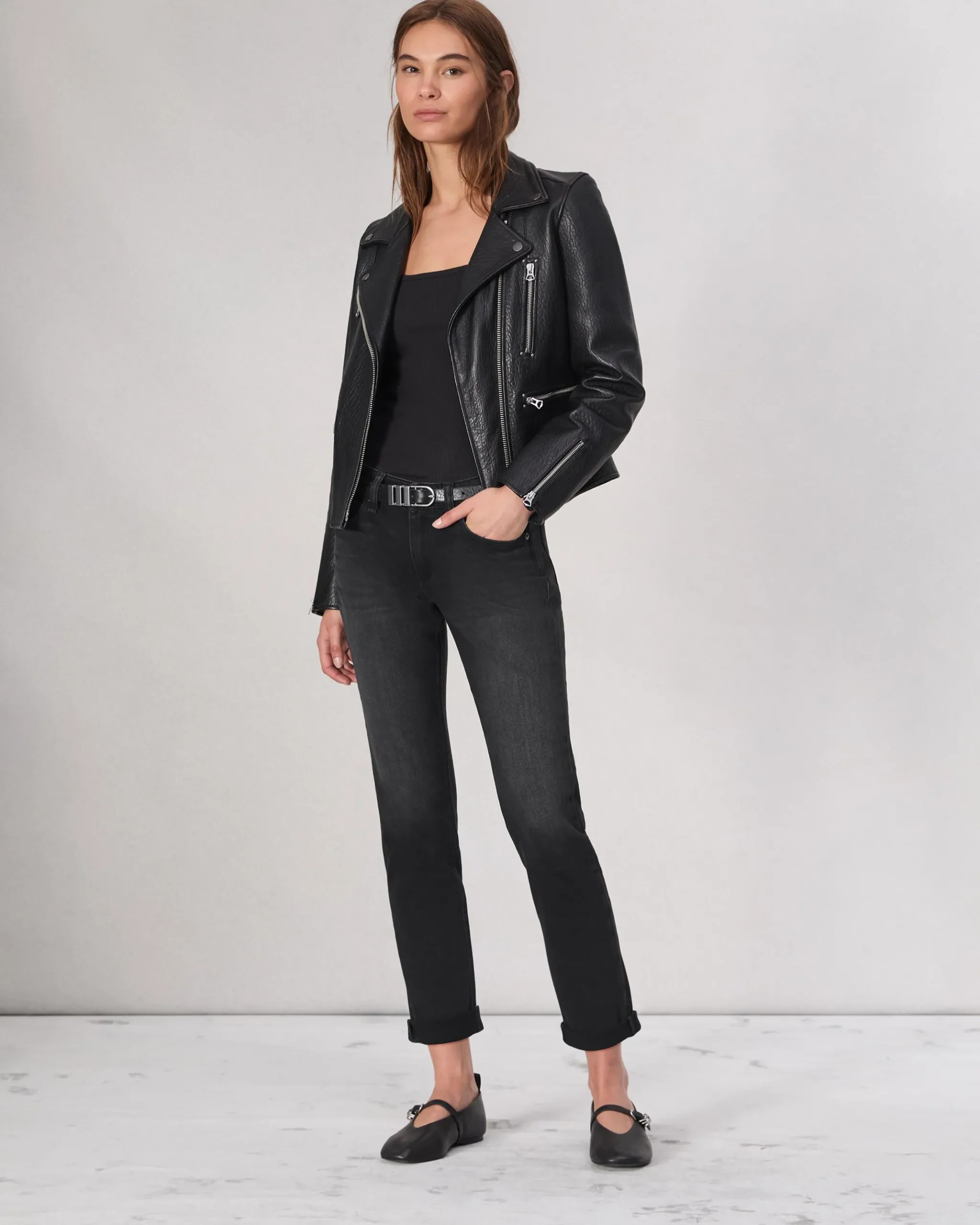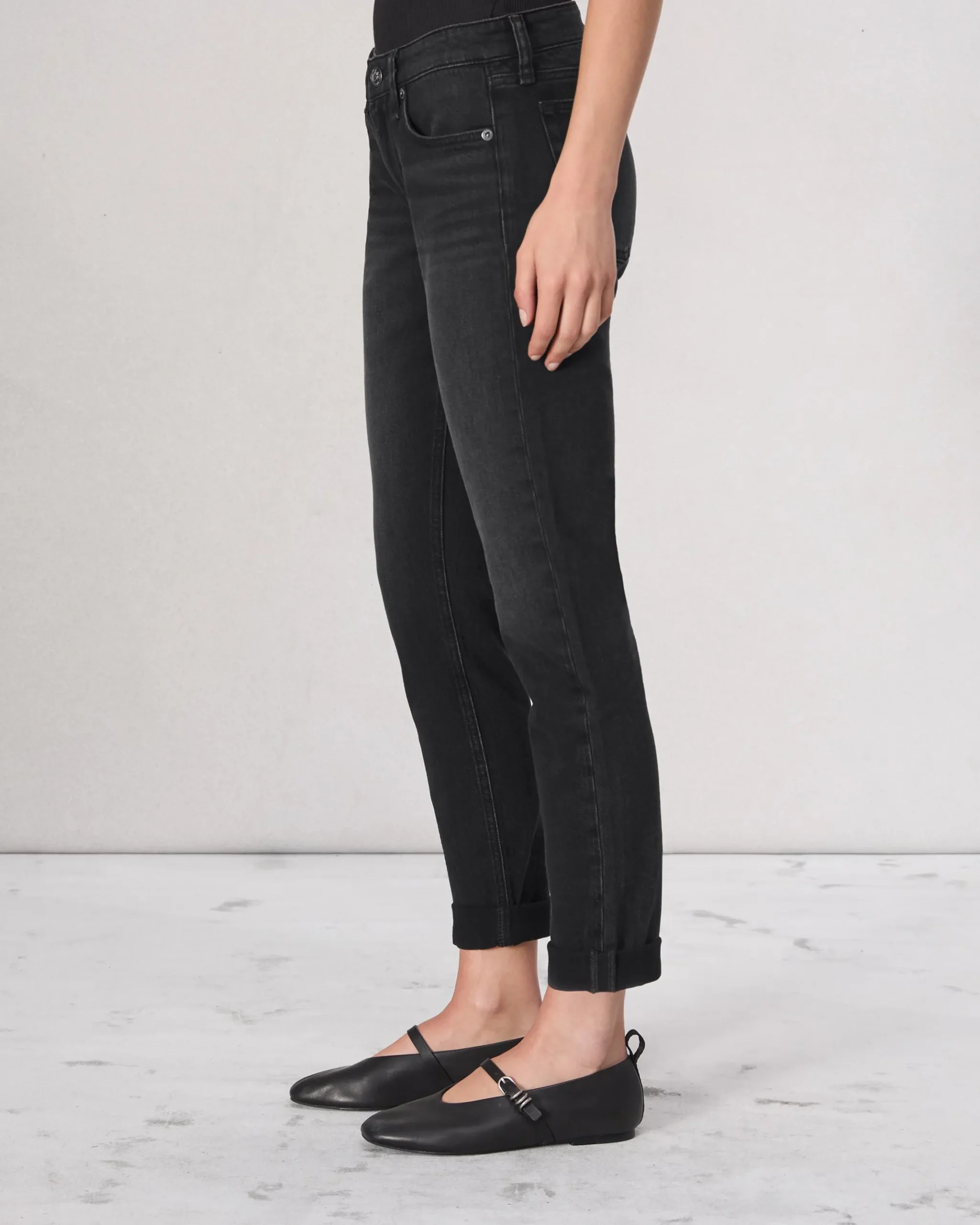The Dre. Low-rise, slim and effortlessly relaxed through the hip and thigh. Crafted in our Vintage Stretch denim that gives you a vintage look with added comfort. In Cornelia, a washed black with a rolled hem.