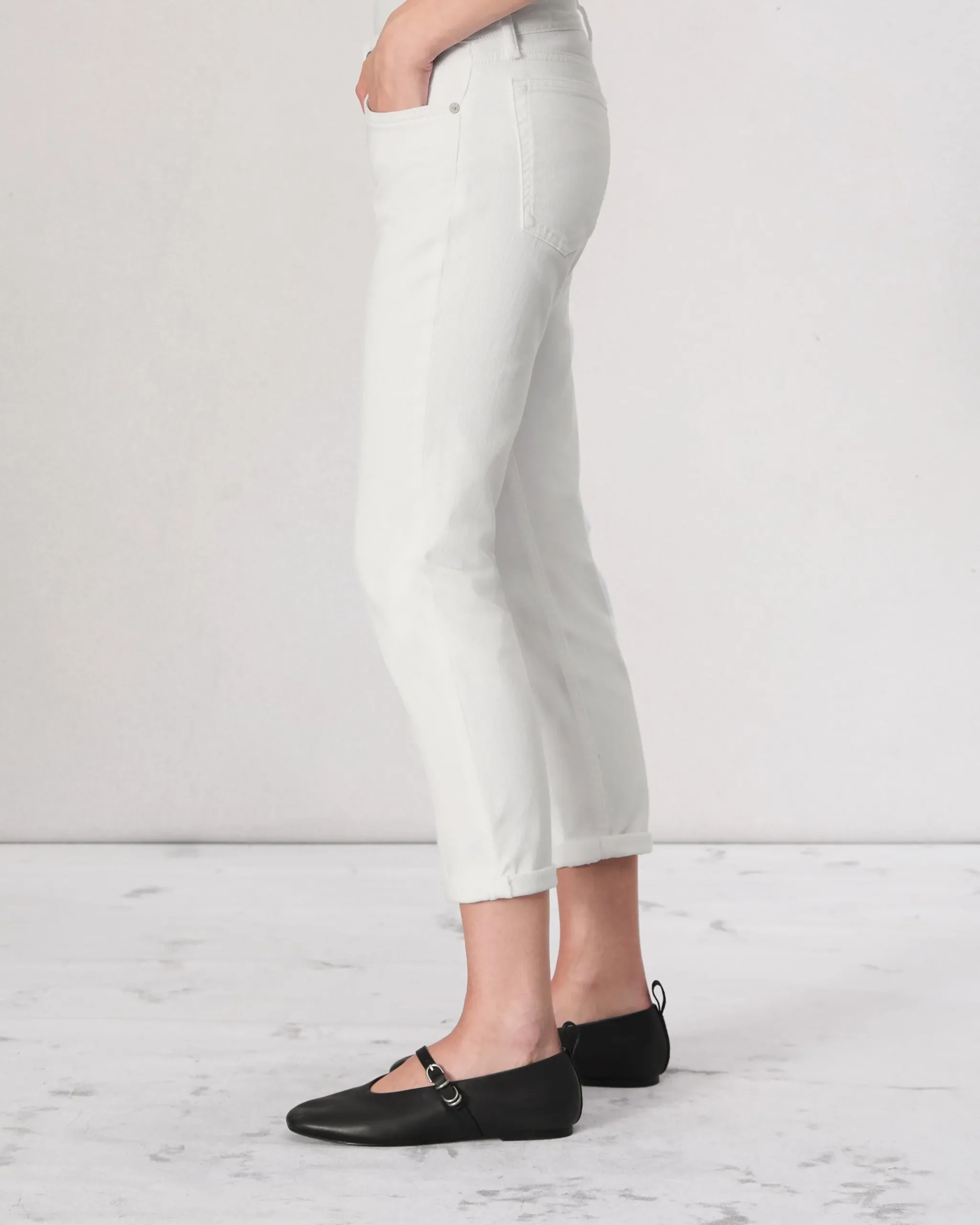 The Dre Slim Boyfriend. A low-rise slim fit pulled straight from the archives and evolved for today. Crafted from our Vintage Stretch denim for an archival look with just a touch of stretch. In Optic White, a true bright white.