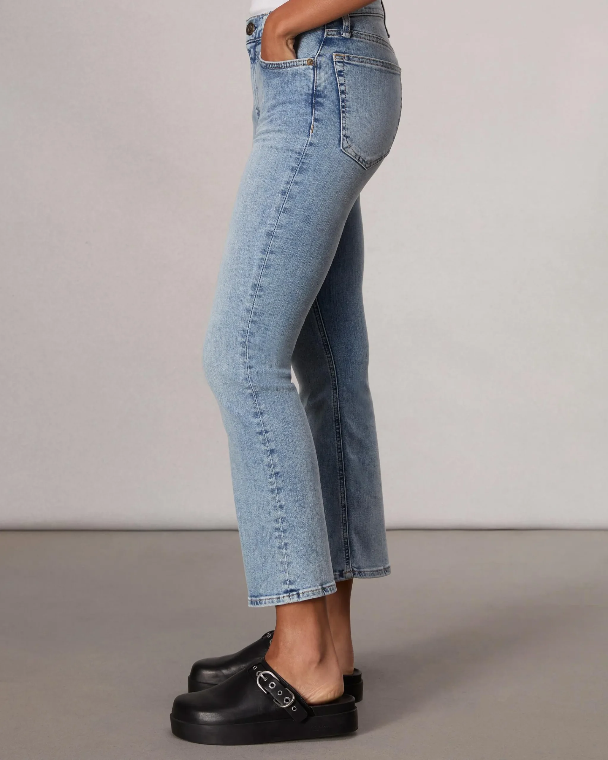 The Peyton. Our cropped take on mid-rise bootcut jeans with a slim fit through the thigh and subtly flared hems. Crafted from our all-new Epic denim that’s our most stretchy yet, for ultimate flexibility and comfort wherever life takes you. (Pro tip: Size down if you’re between sizes.) In Summers, a light indigo wash.