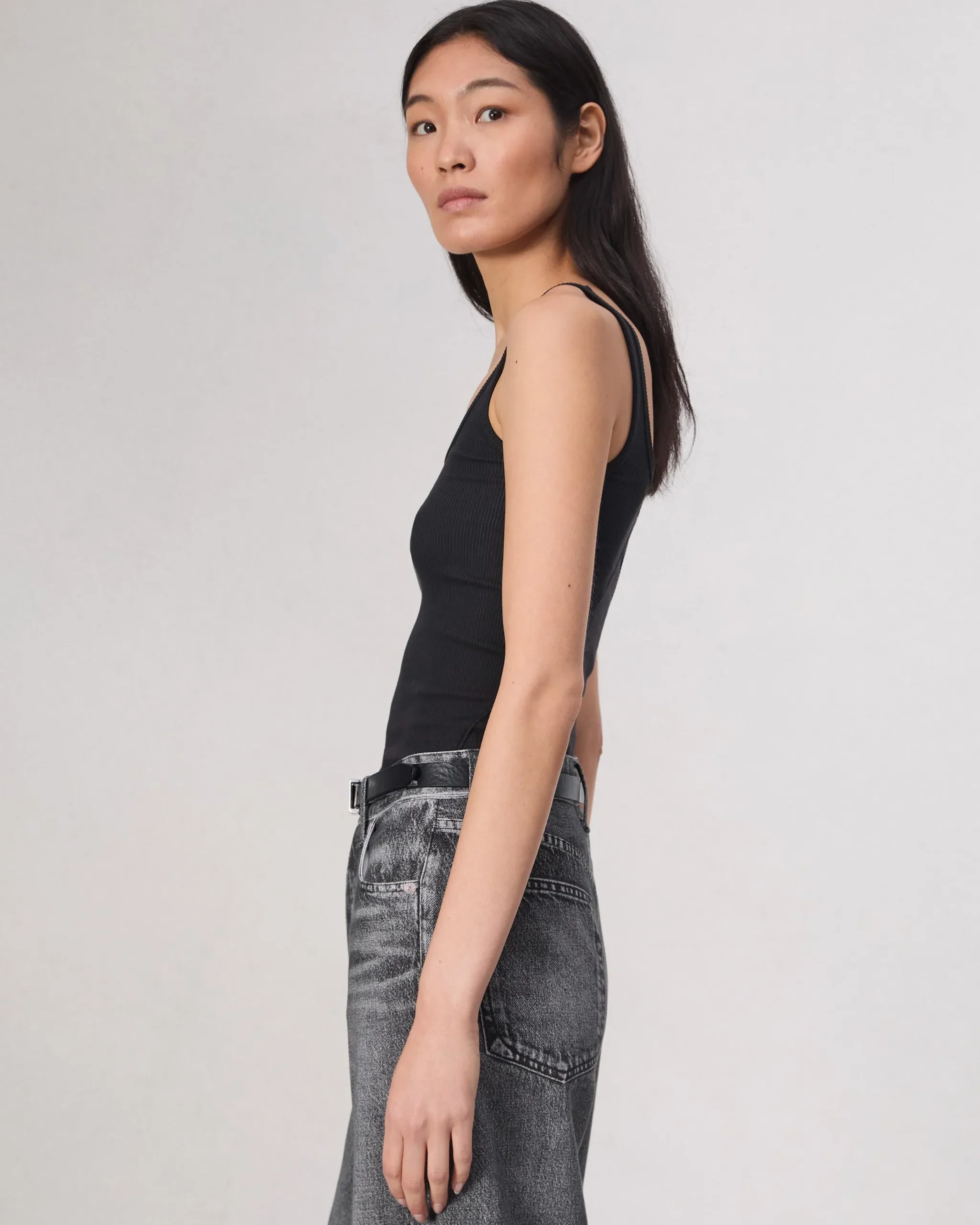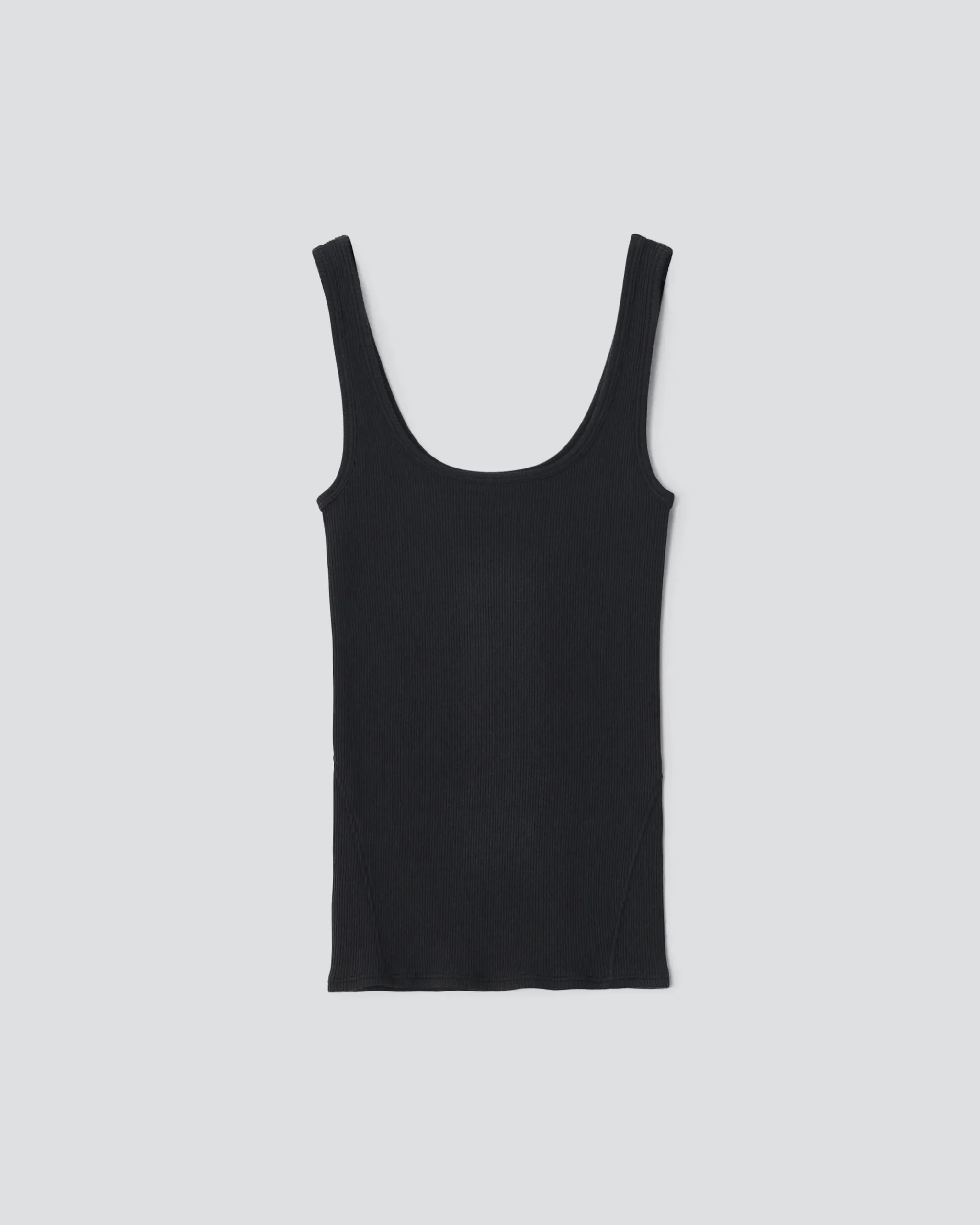 By definition you can’t live without this rib tank. Cut in an ultra flattering slim fit with a scoop neck and knit from organic-in-conversion cotton with an added touch of stretch to move around in. Essential.