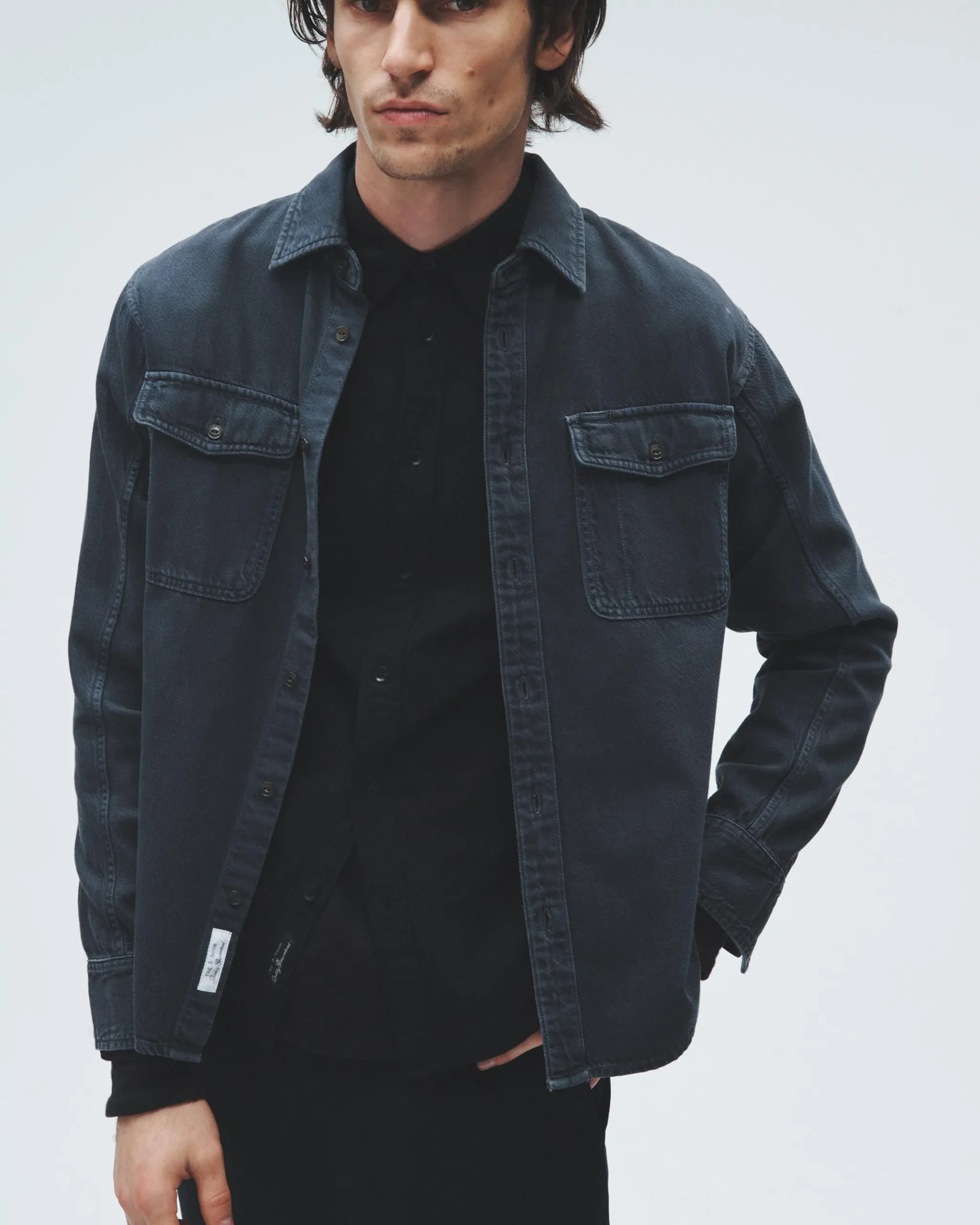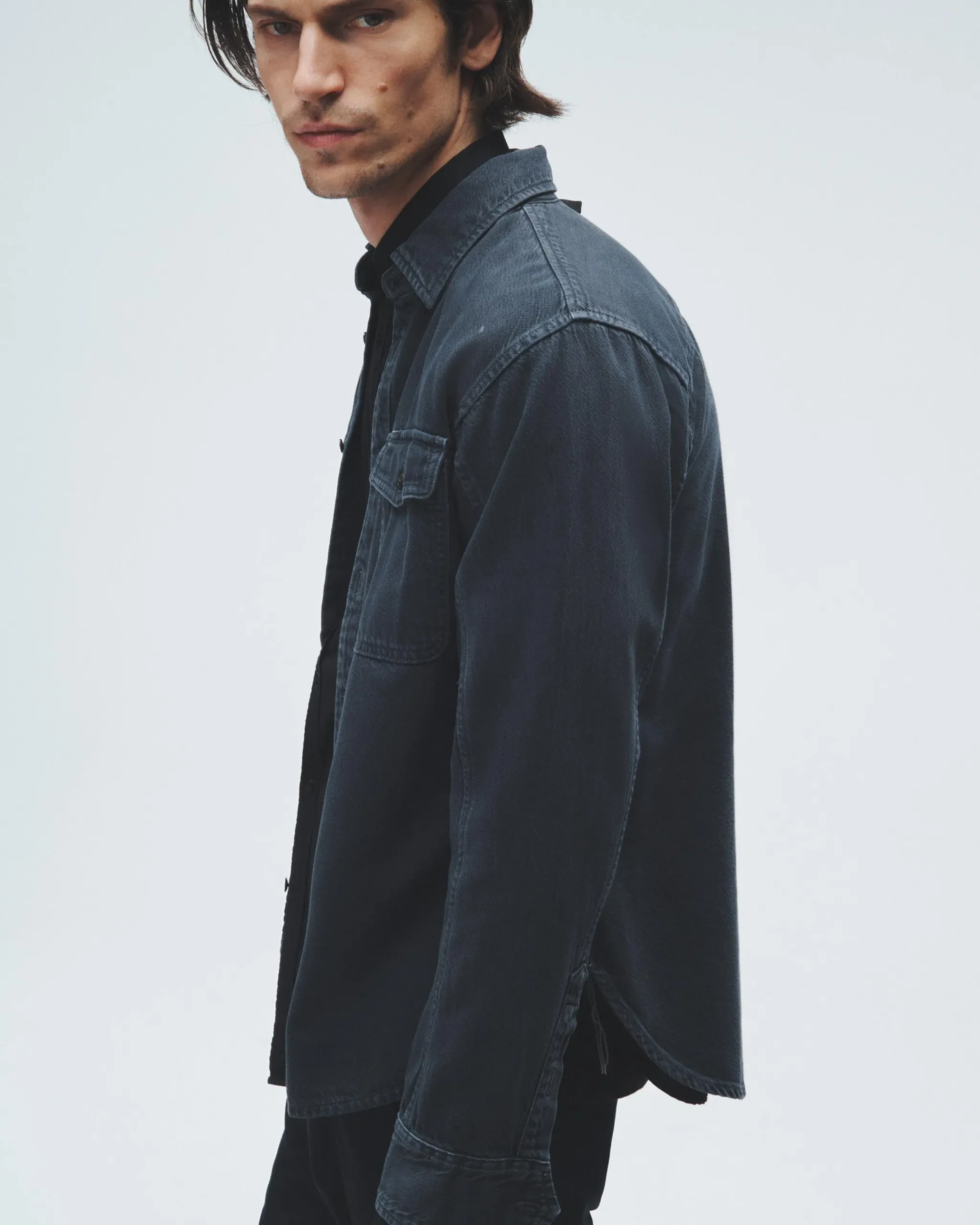 Our iconic Jack Shirt silhouette, updated with engineered sleeve construction to allow for the utmost functionality and ease. Crafted from our Featherweight denim that’s made with lyocell to make it ultra-light and supremely soft, the Jack Shirt features mudd buttons along the front and sleeve cuffs. Your go to, versatile shirt that can be worn as a base layer, or thrown over a tee for a more relaxed look. Featured in Minna, a dark indigo overdyed wash.