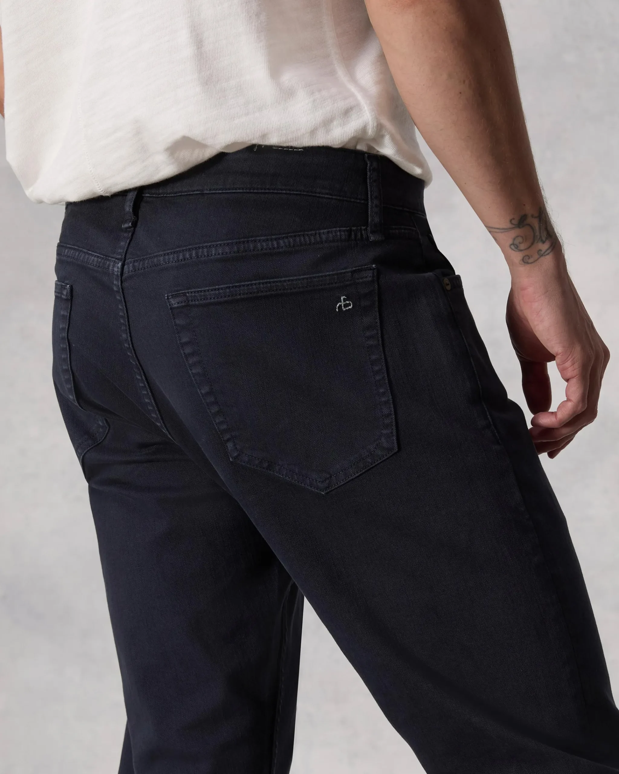 Mid-rise, slim fit11″ rise, 32″ Inseam, 13.5″ leg openingModel is 6’2″ wearing a size 32