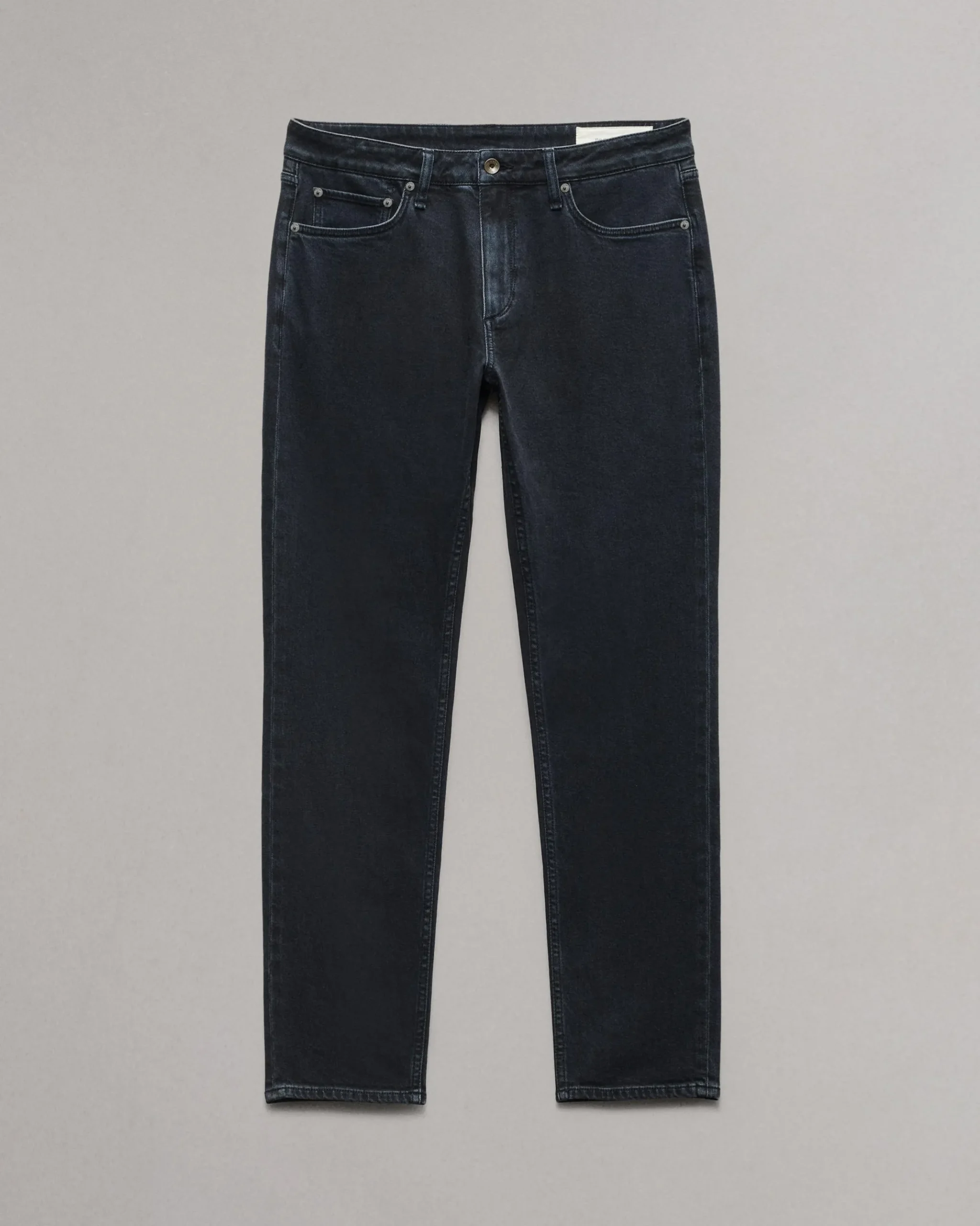 99% Cotton 1% LycraAuthentic stretch dark wash denimMachine wash cold with like colors, tumble dry lowZipper fly, mudd rivets and mudd center front tack buttonEggshell rag and bone embroideryClean finished hemFive- pocket silhoutteImported