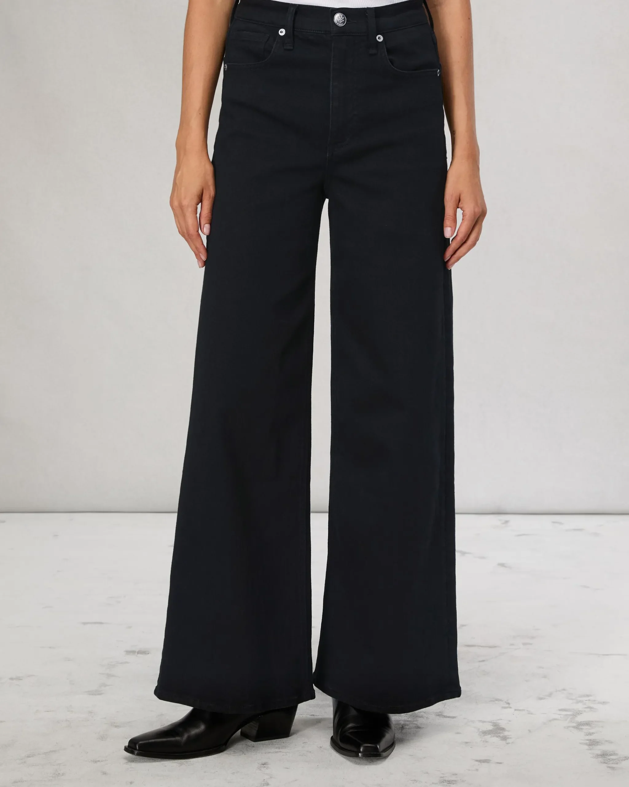 The Sofie. This is our high-rise fit with a cropped wide leg that’s a rag & bone office favorite. Crafted from our Flexi denim that smooths, sculpts, and stretches for ultimate comfort and style wherever life takes you. In Black with a clean hem.