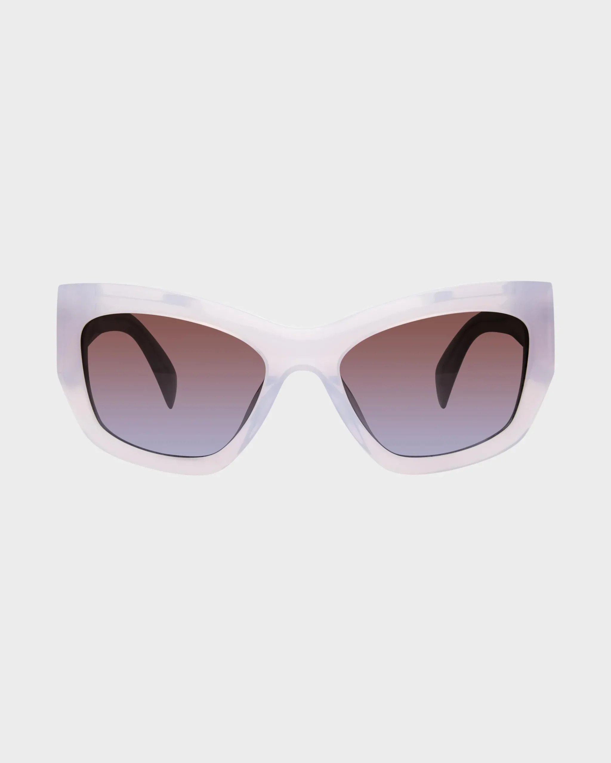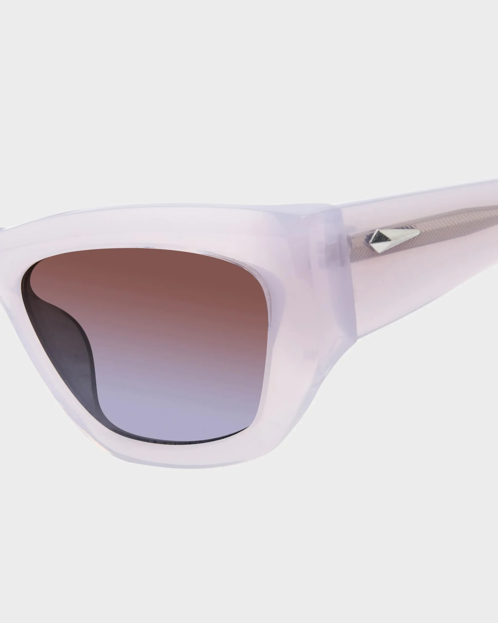 A cat eye silhouette with an eco acetate frame and 100% UV protection.