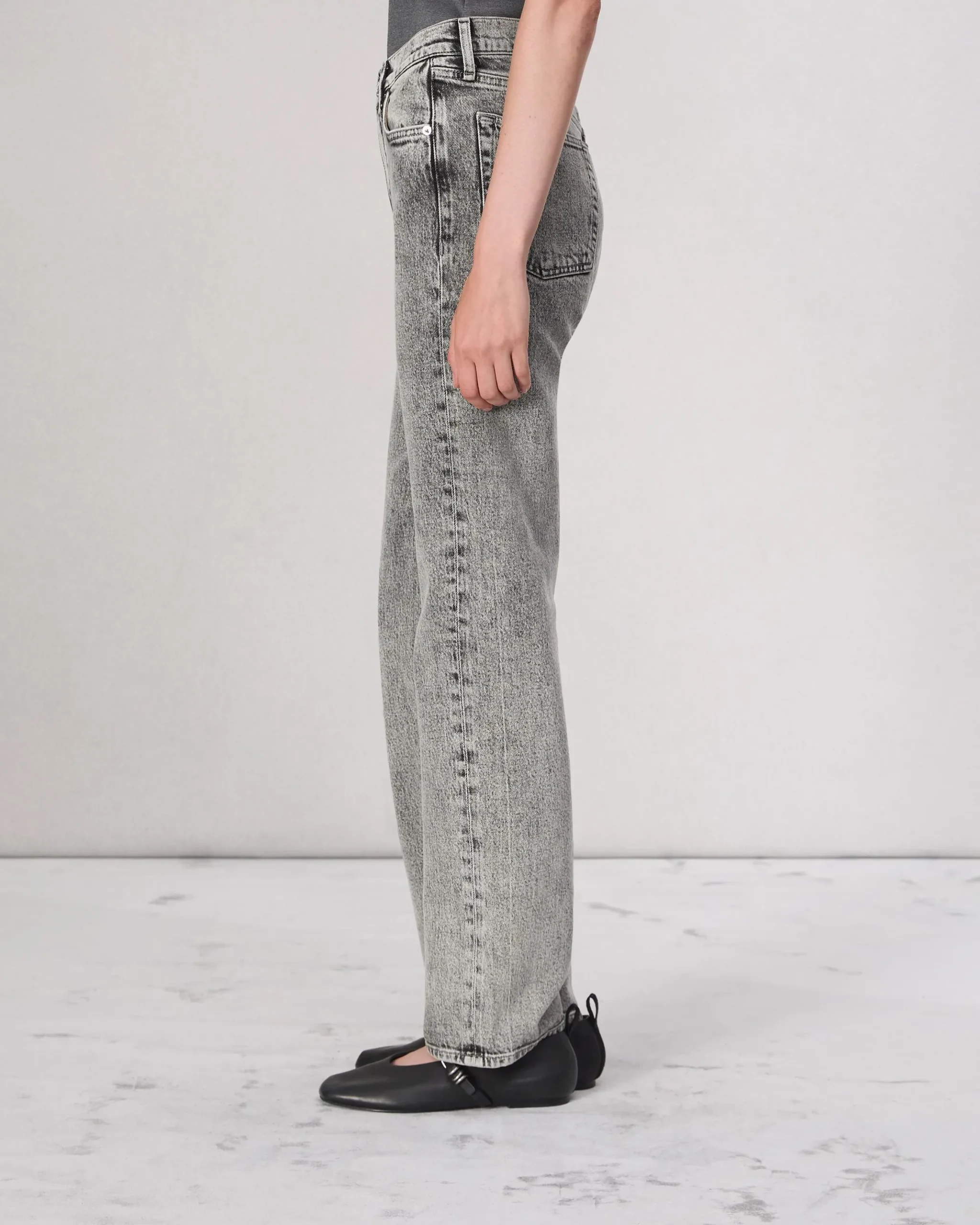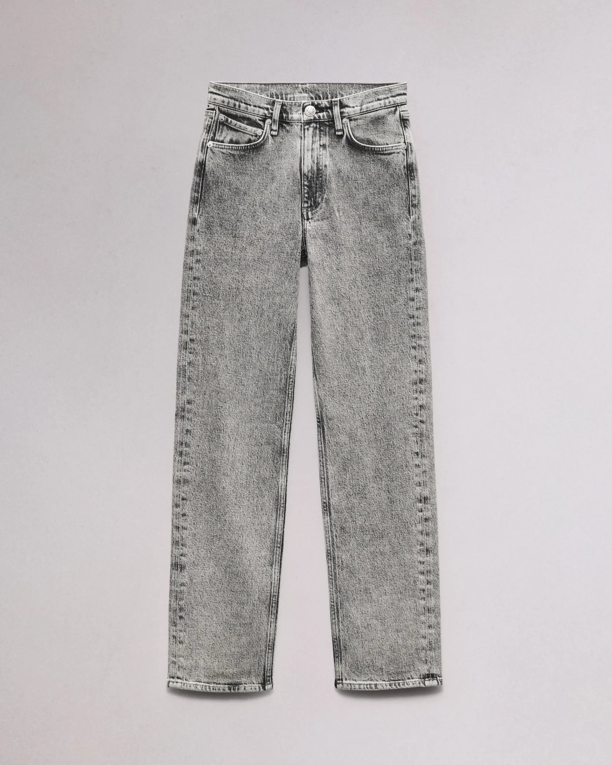 The Harlow. A clean, full length straight fit crafted in our Vintage Stretch for a structured look that’s actually soft and flexible. In Hudson, a grey acid wash with a clean hem.