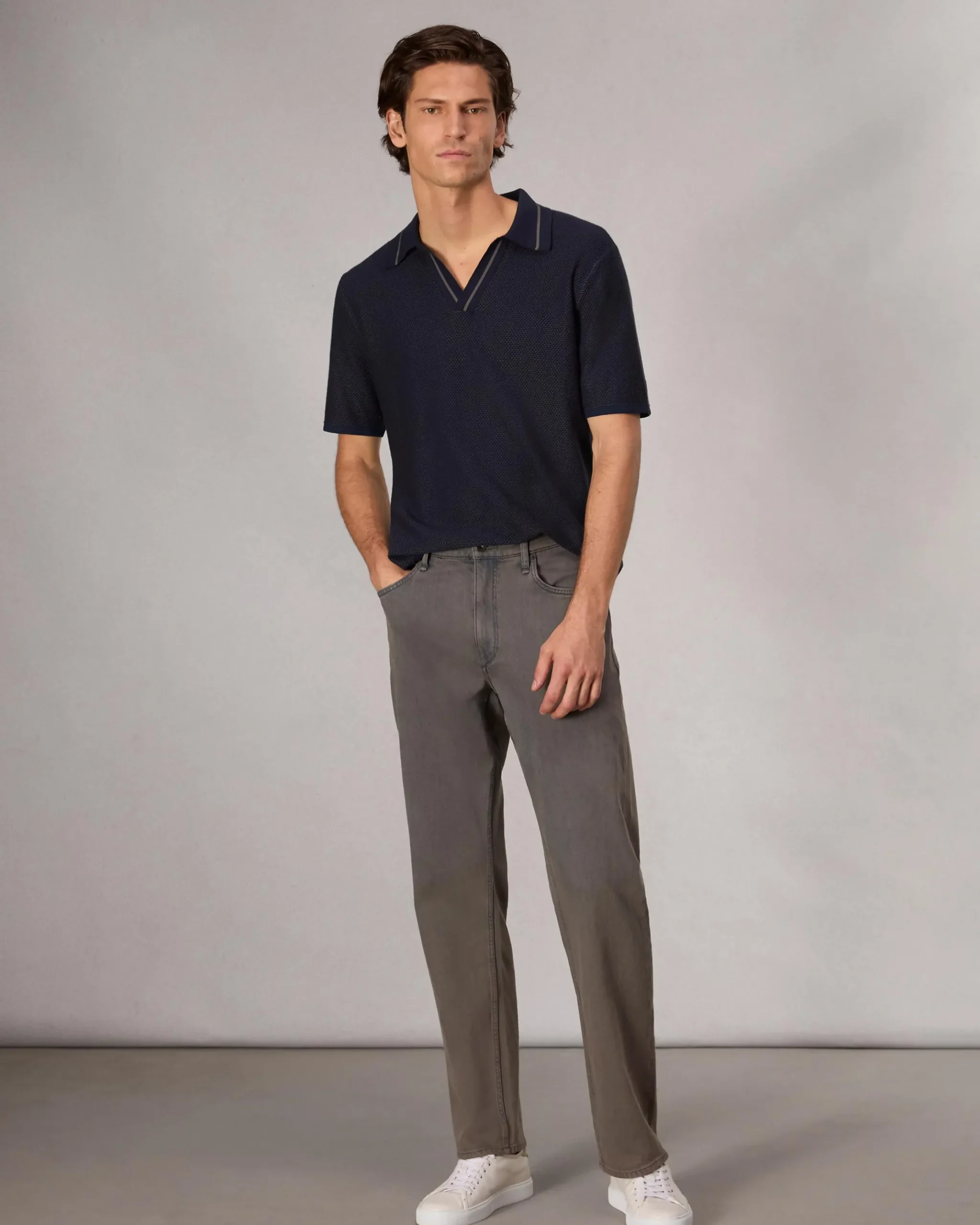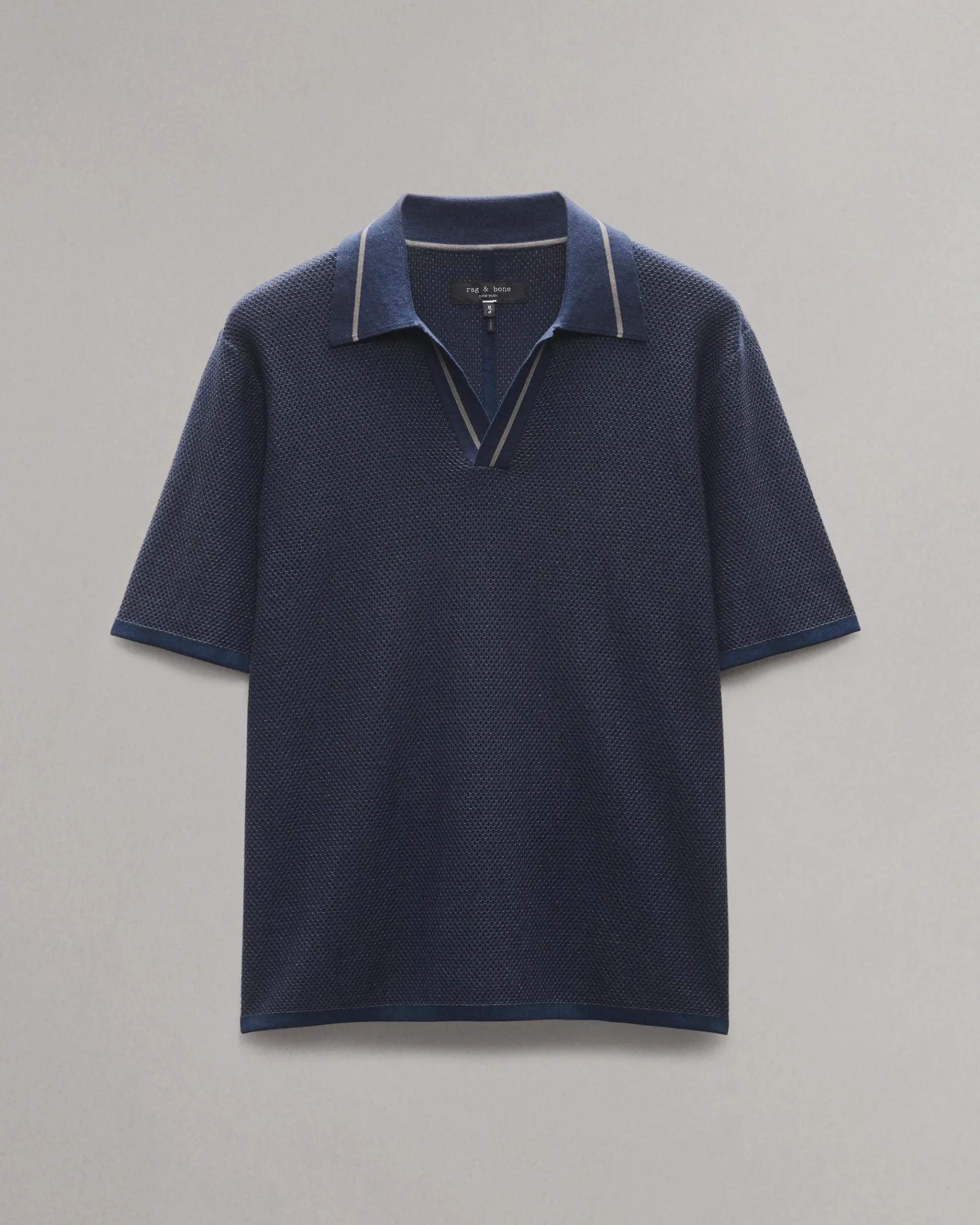 The comfort of a sweater meets the polish of a polo. Knit from a lightweight cotton blend with a vintage-inspired texture, this polo shirt is tailored with a striped Johnny collar and a classic fit.