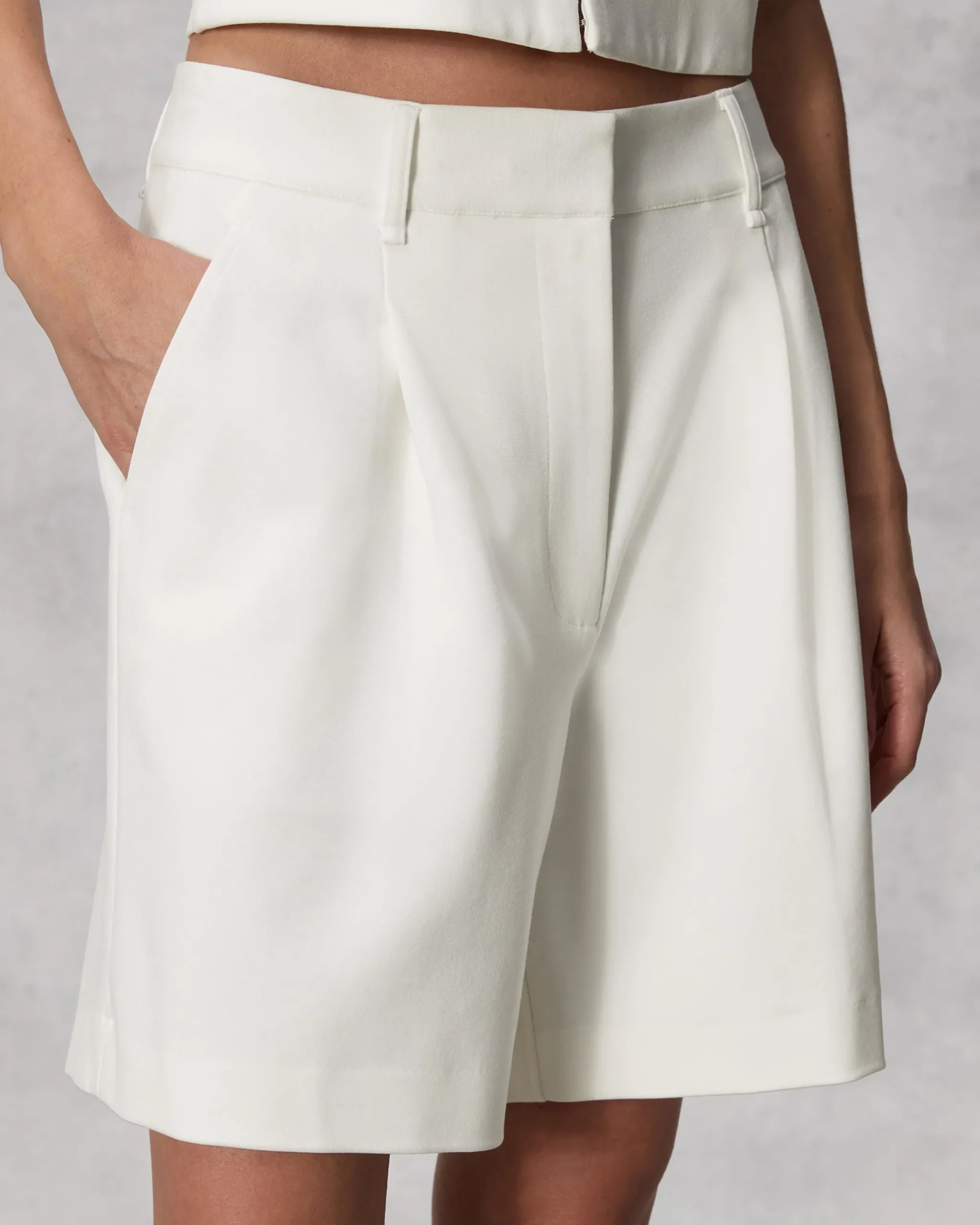 The Irina. Our signature wide-leg pant is now warm weather ready. Updated as a short, it is pleated in a stretch Ponte fabric designed to take you anywhere.
