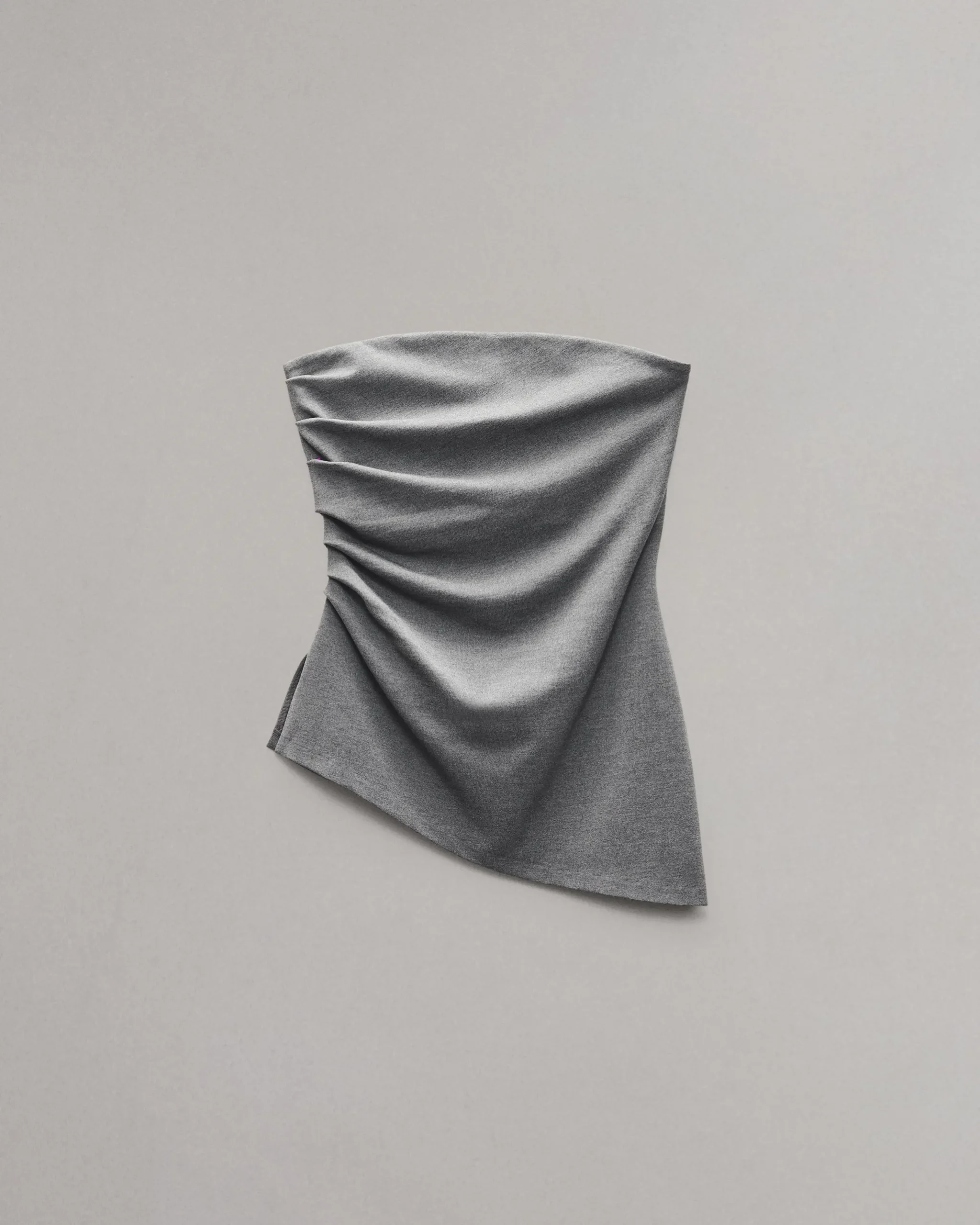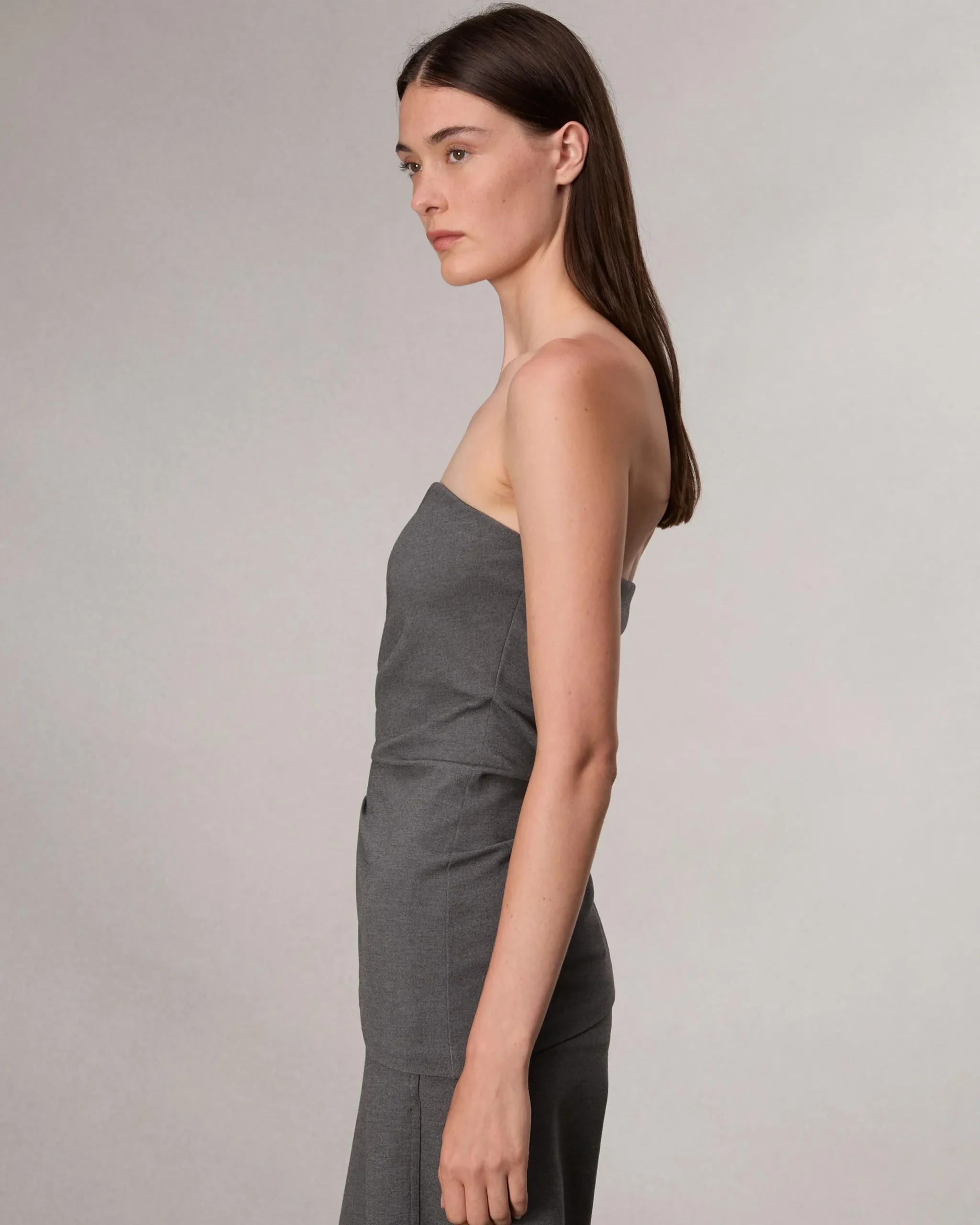 We tailored this strapless top in a slim fit from Ponte, our signature stretch knit perfect for long days and even longer nights. It’s finished with a unique asymmetrical hem and shirring at the sides for a figure-flattering fit.