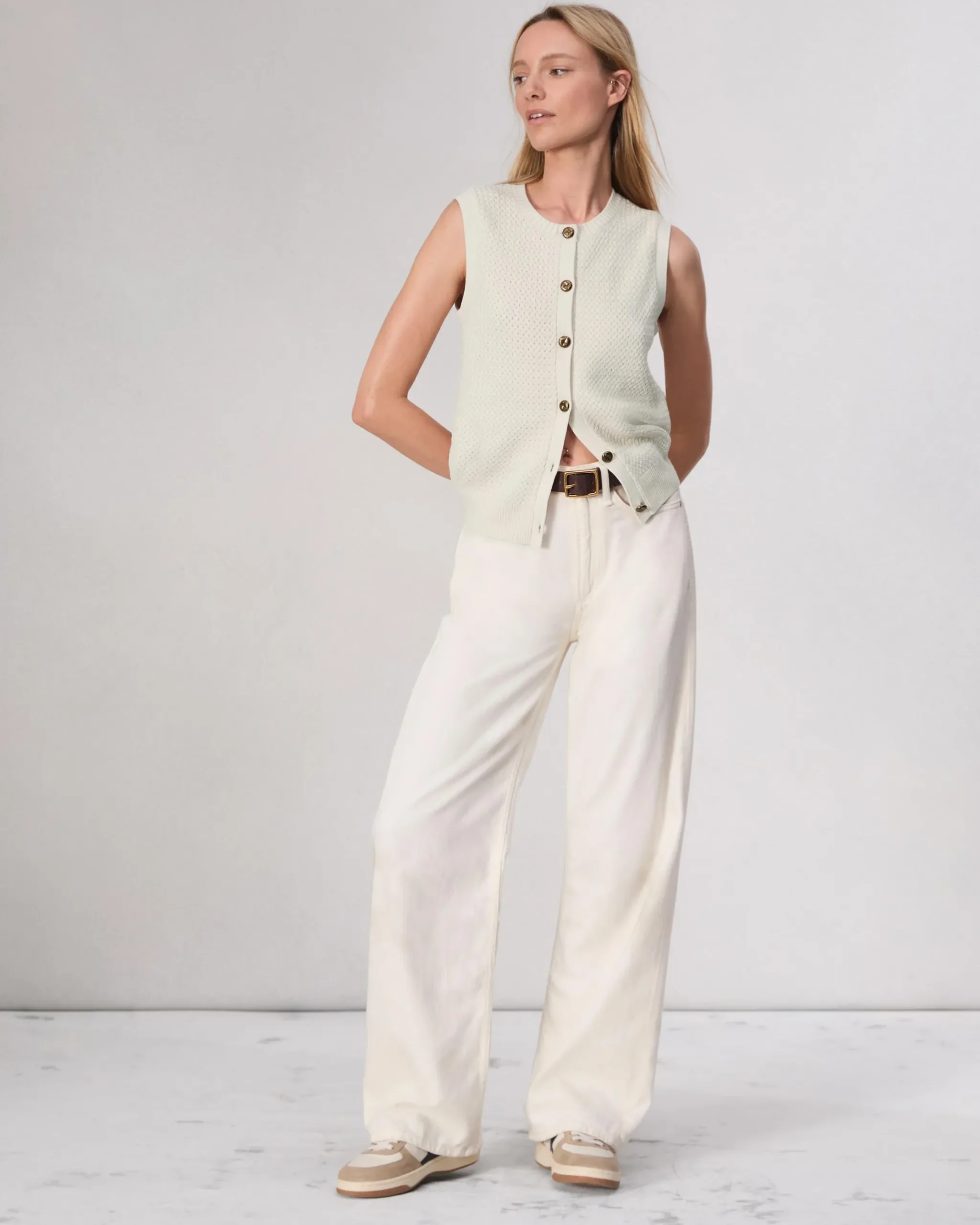 The Jax. As comfortable as it is elevated. Finished with knotted gold-tone buttons, our sweater vest is crafted from a textured knit with touches of cotton and extra-fine merino wool.