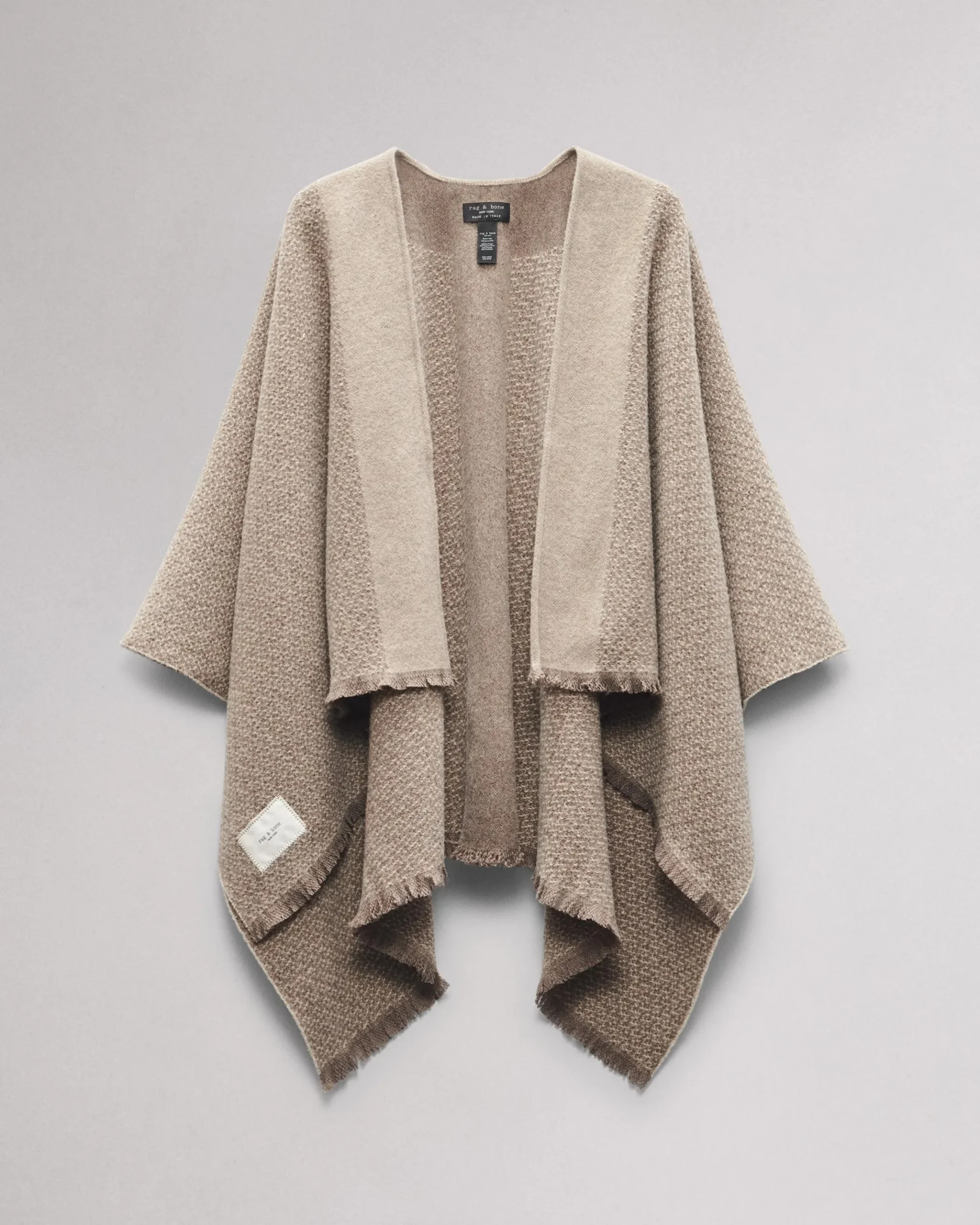 The Joni Poncho. Crafted in Italy with recycled wool tweed, this reversible poncho is the perfect throw-on-and-go layer for chilly commutes.