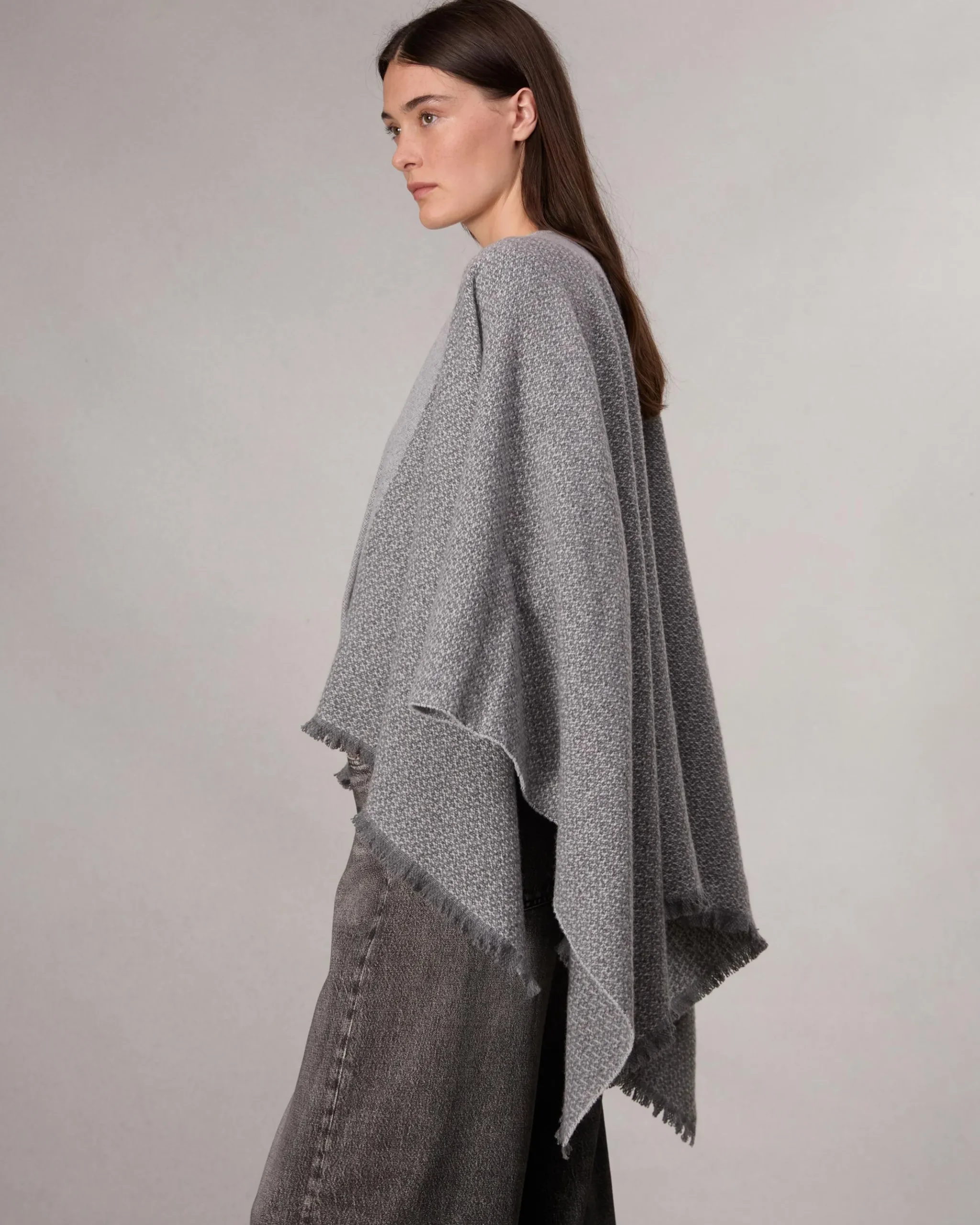 The Joni Poncho. Crafted in Italy with recycled wool tweed, this reversible poncho is the perfect throw-on-and-go layer for chilly commutes.