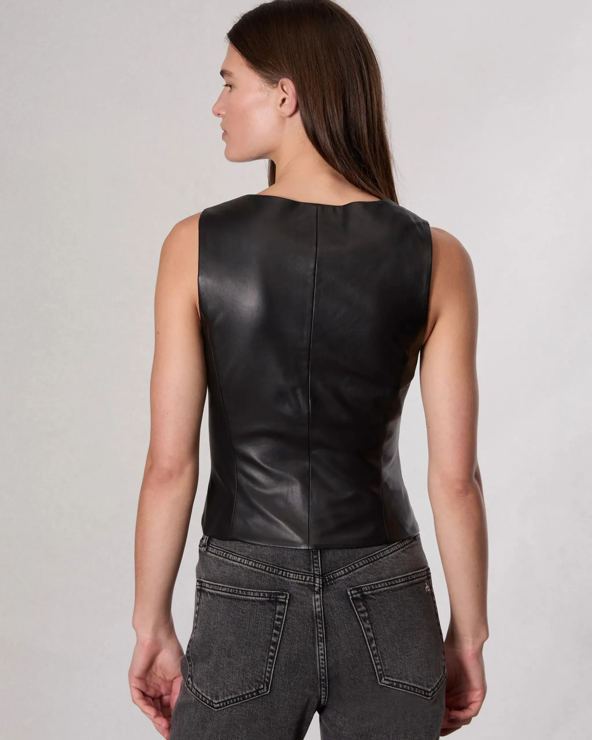Luxuriously soft lamb leather takes this slightly cropped square-neck vest to the next level.