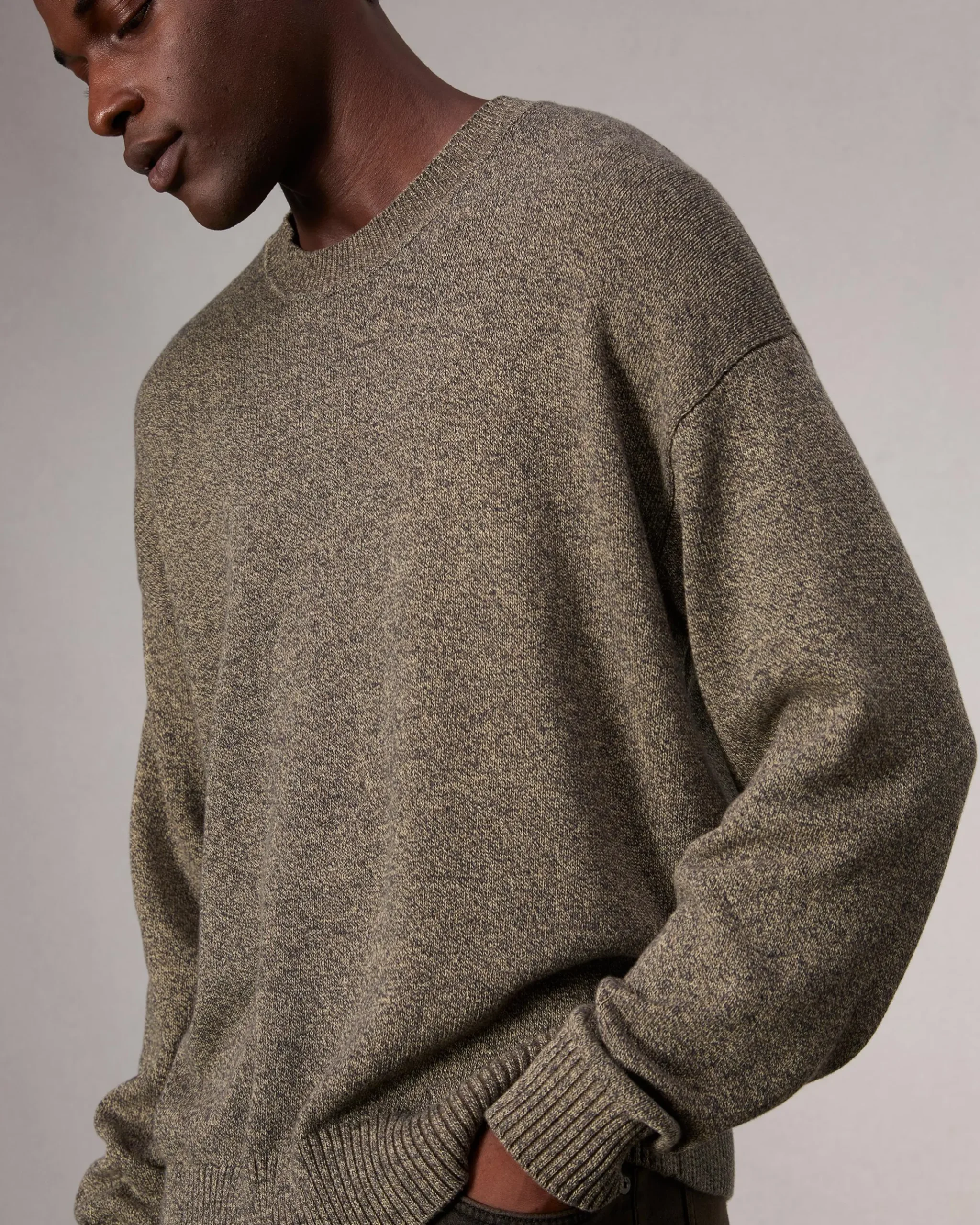 Five unique colors of organic cotton yarn are knit together to give this midweight, classic-fit crewneck sweater its marled texture and dimension.