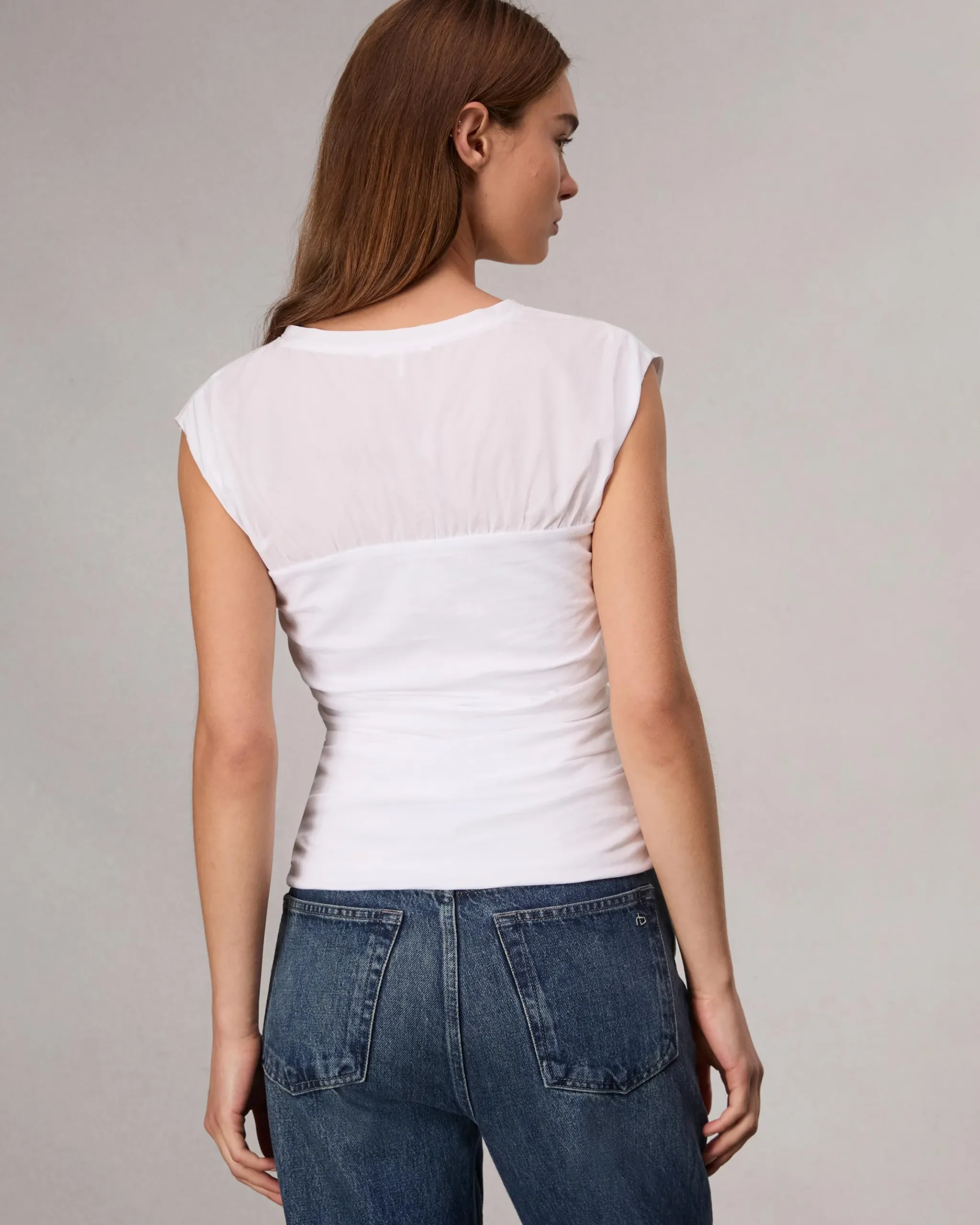 Poplin and jersey combine in this slim-fit cotton top, which features a banded bodice plus shirring and ruching details for the perfect figure-flattering look.