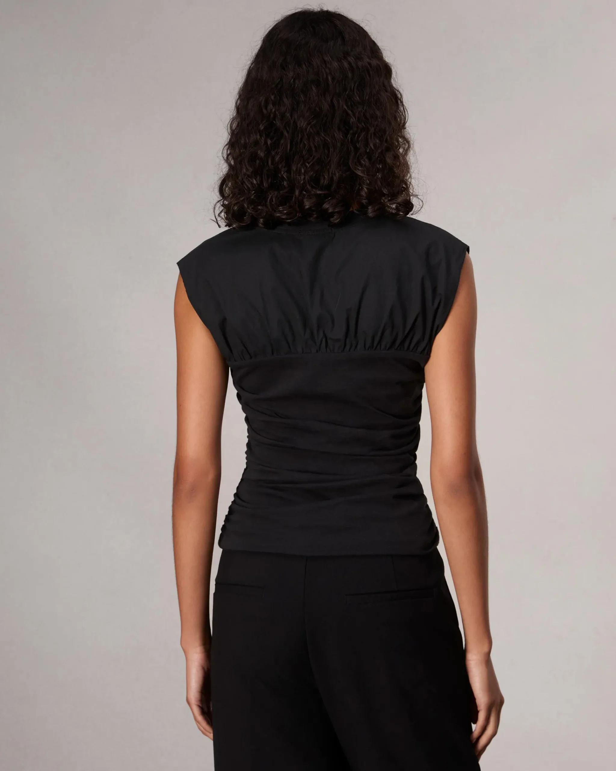 Poplin and jersey combine in this slim-fit cotton top, which features a banded bodice plus shirring and ruching details for the perfect figure-flattering look.