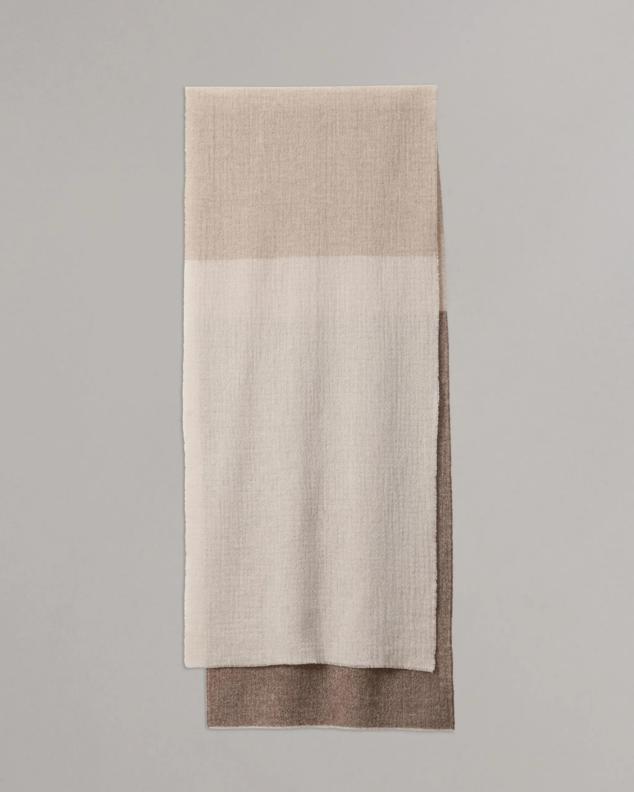 Equally stylish and warm, this color block scarf is knit in Italy from ultra-soft virgin wool and finished with a raw edge.